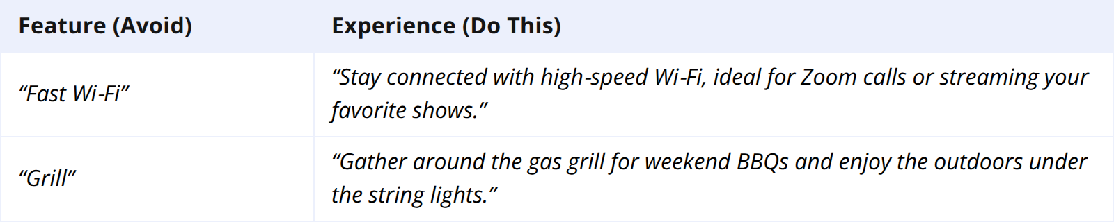 Action: Use this audience focus to prioritize key features in your rental listing description examples.