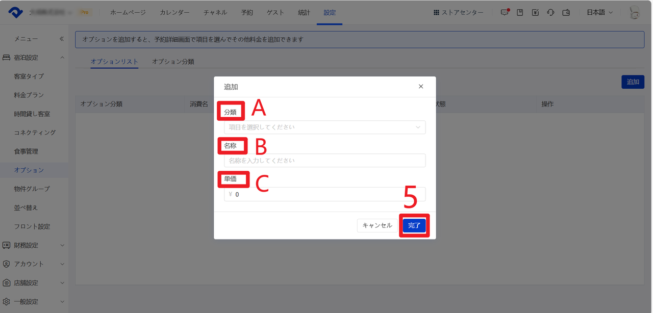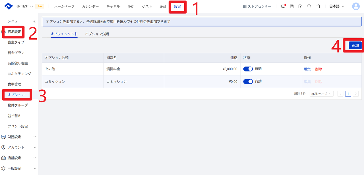 オプションを設定した後、予約にオプションを追加できます。詳細は下記文章をご参照ください