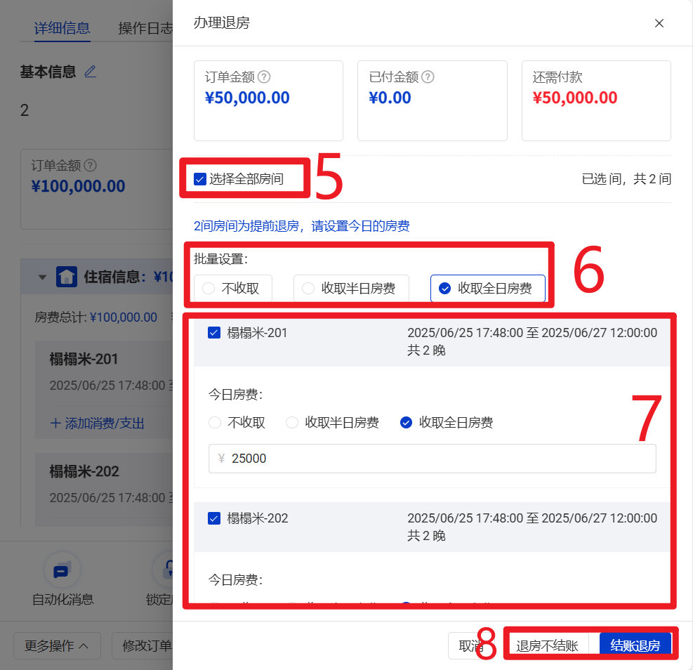 8 选择结账不退房或结账退房