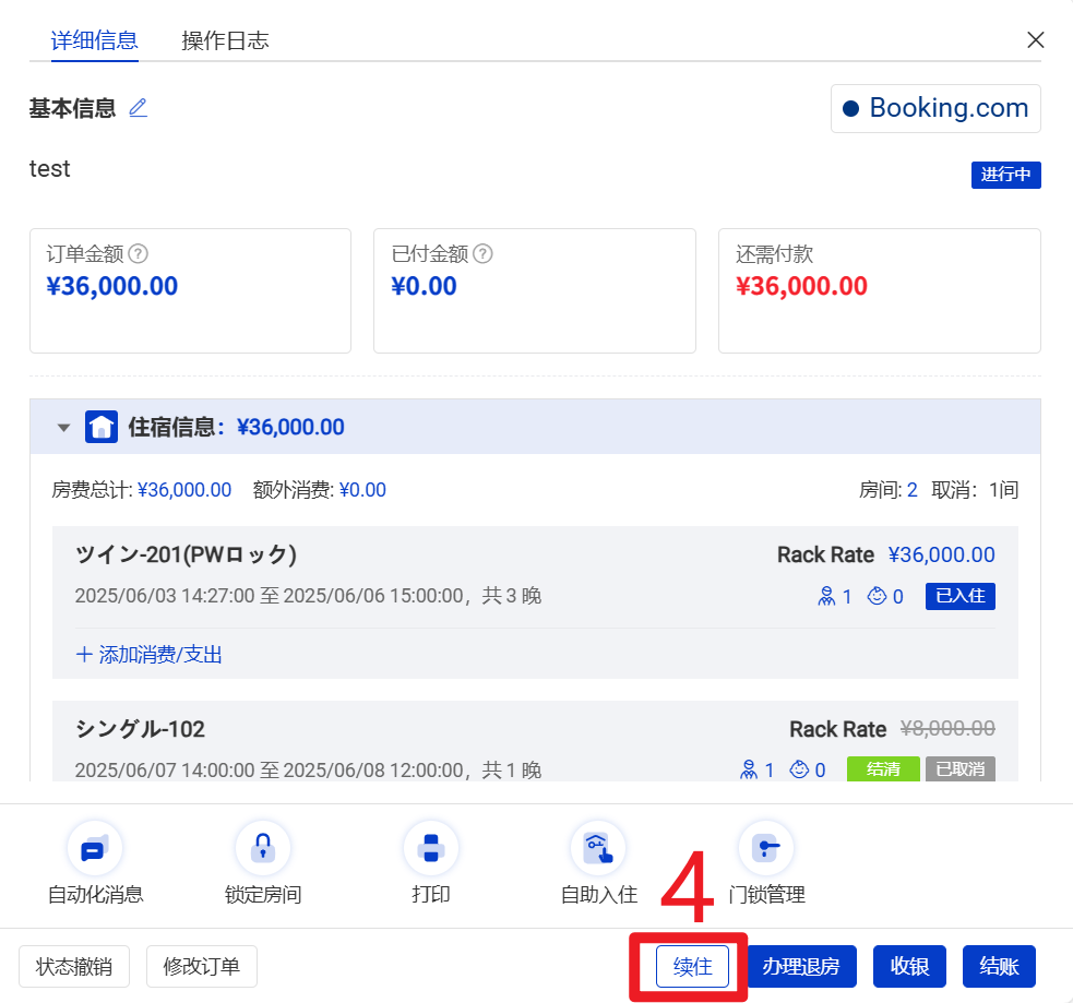 4 先操作订单续住