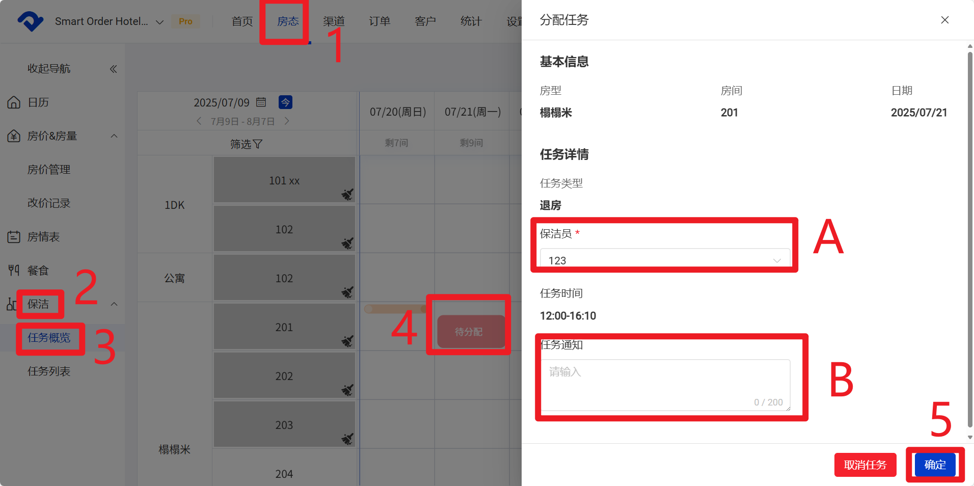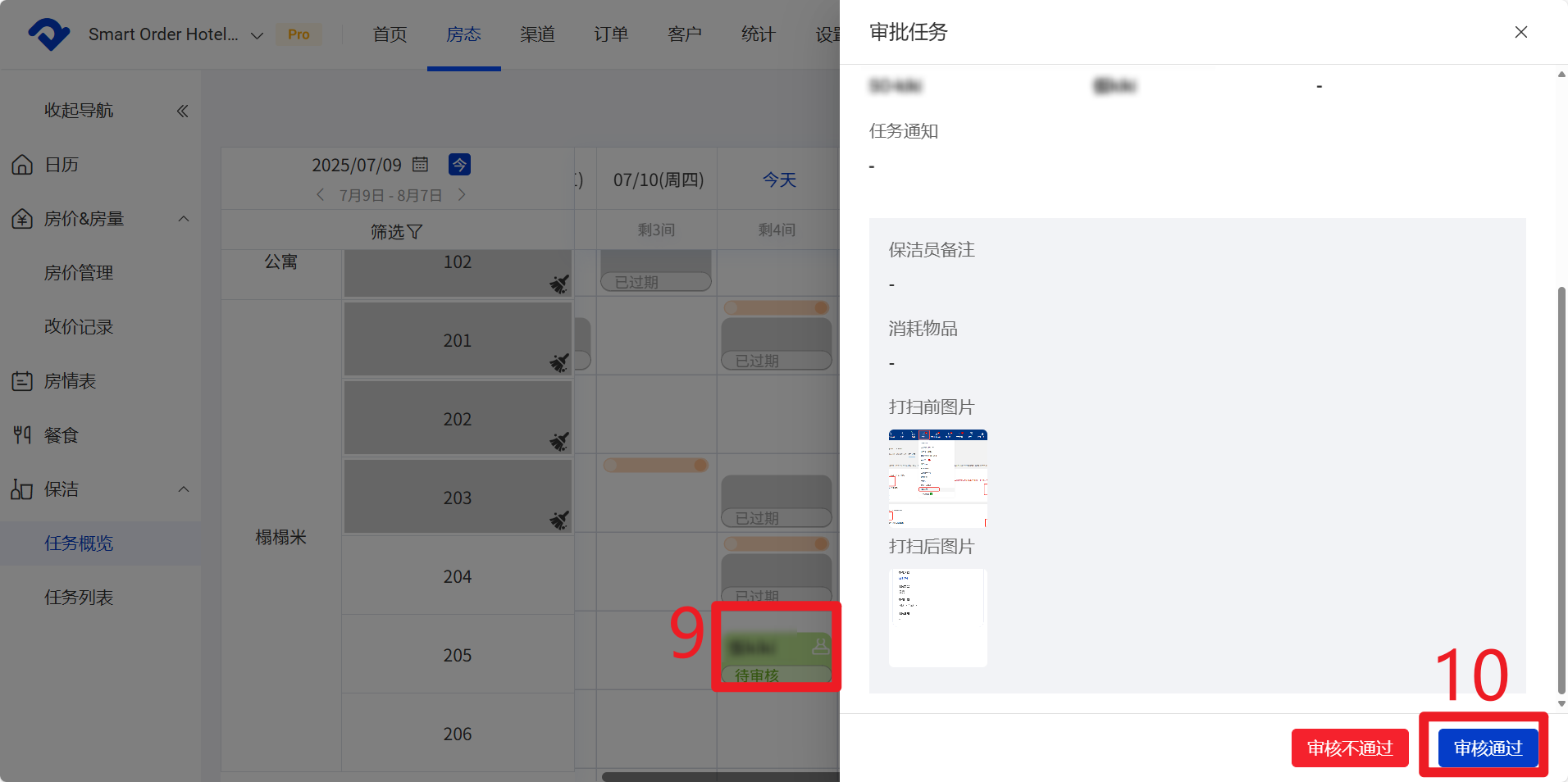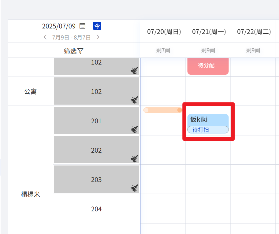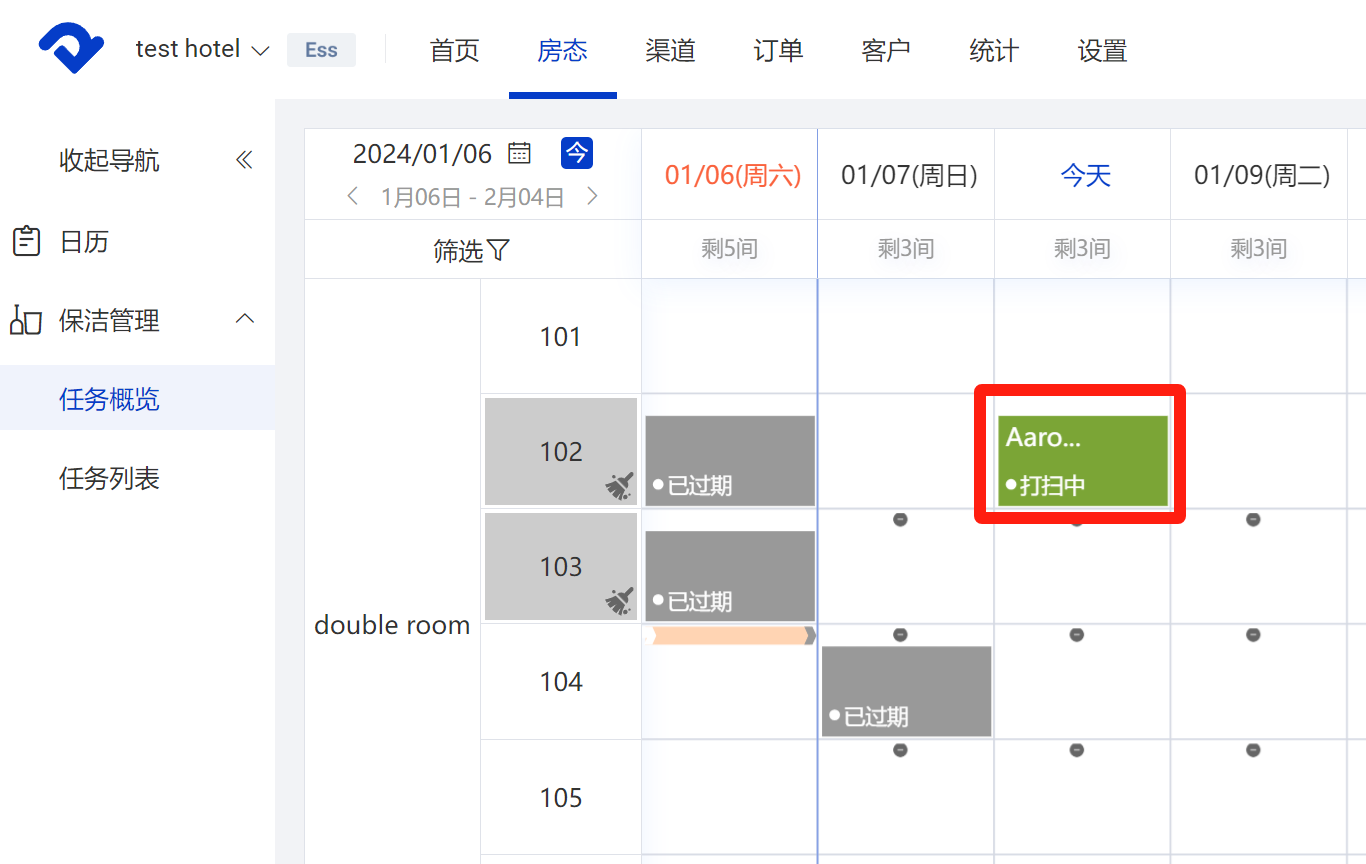 此时,该保洁任务在系统内会变成“待打扫“状态
