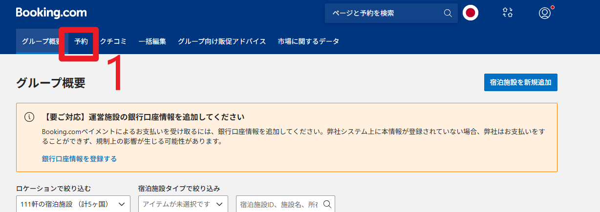 方法②:宿泊施設グループ概要のトップページからすべての物件の予約をエクスポートする(複数物件の場合はこちらがおすすめ)