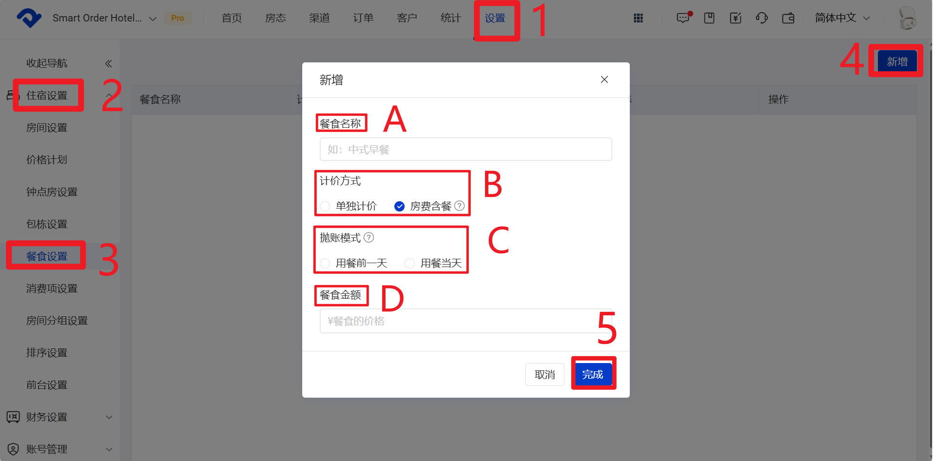 C 抛账模式:修改此项不影响已经添加的餐食。