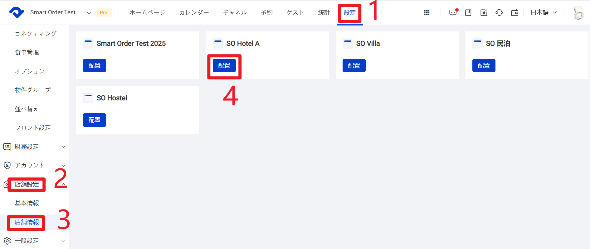 A. 店舗名:システム店舗名(例:【Smart Order Test】)