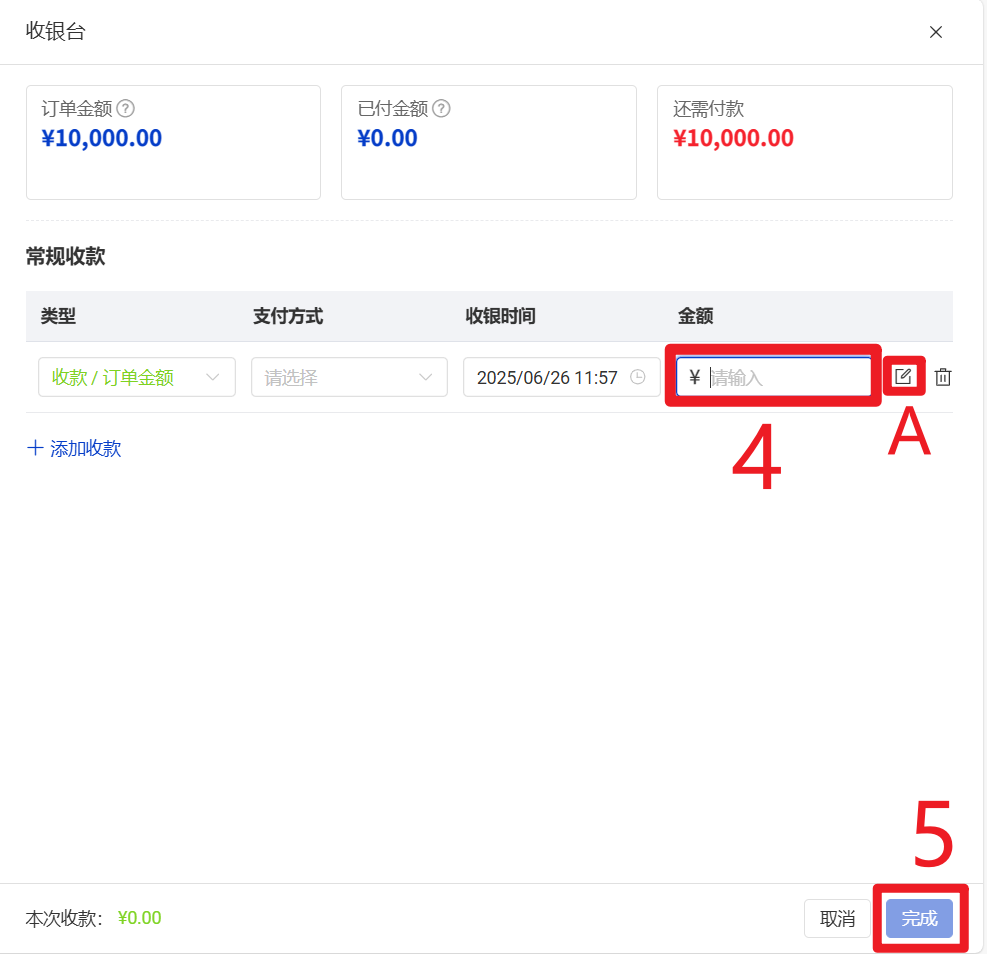 3 选择支付方式(支持自定义支付方式,设置方式参考新增收款方式)
