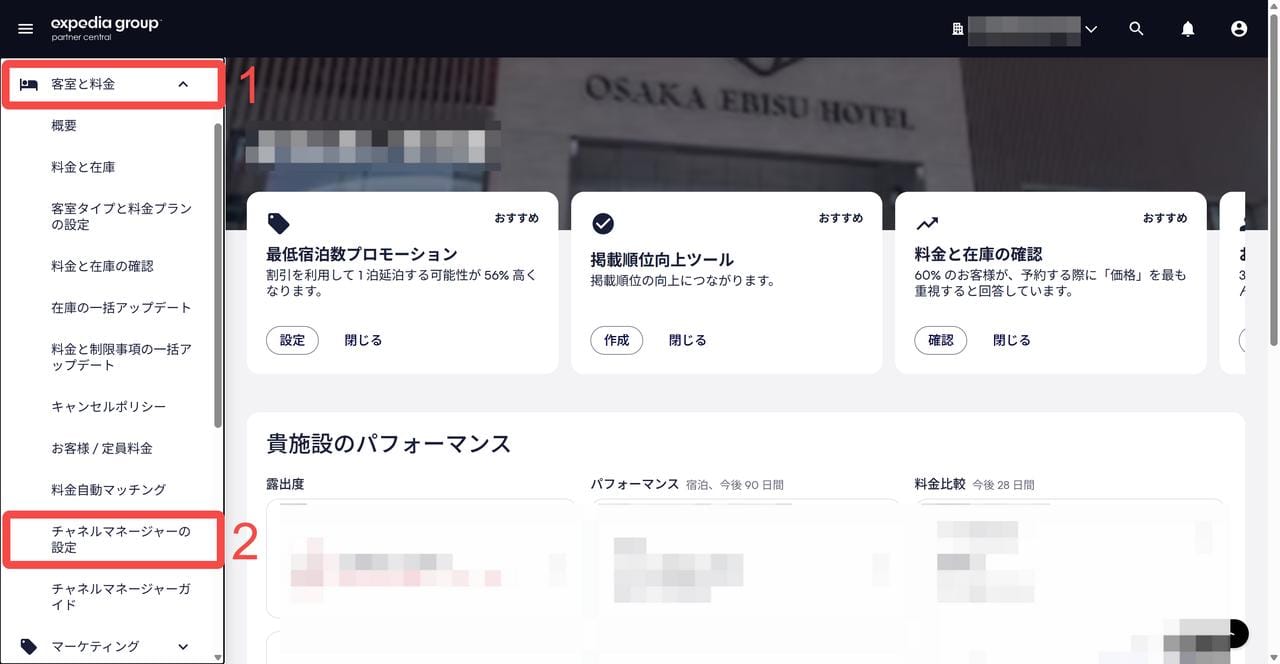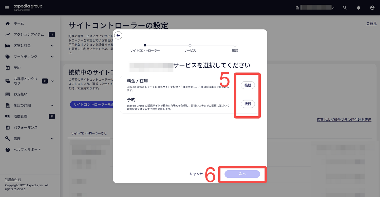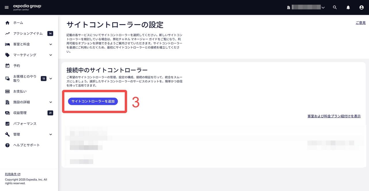 一、Expedia管理画面で「サイトコントローラー」を【OTASwitch】に切り替える