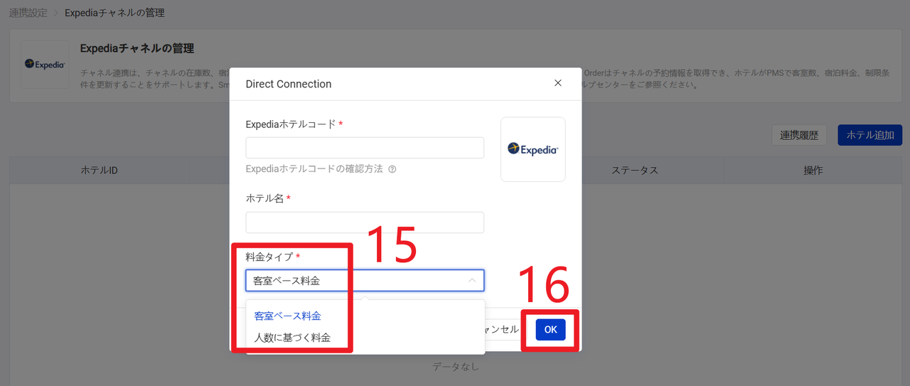 PMS上でExpediaの追加ゲスト料金を管理する:「人数に基づく料金」