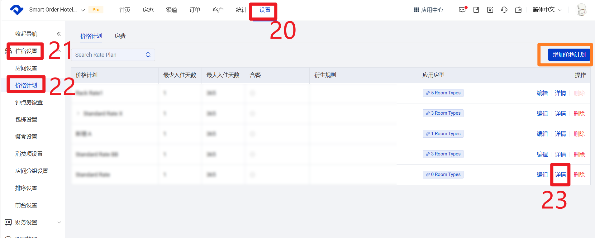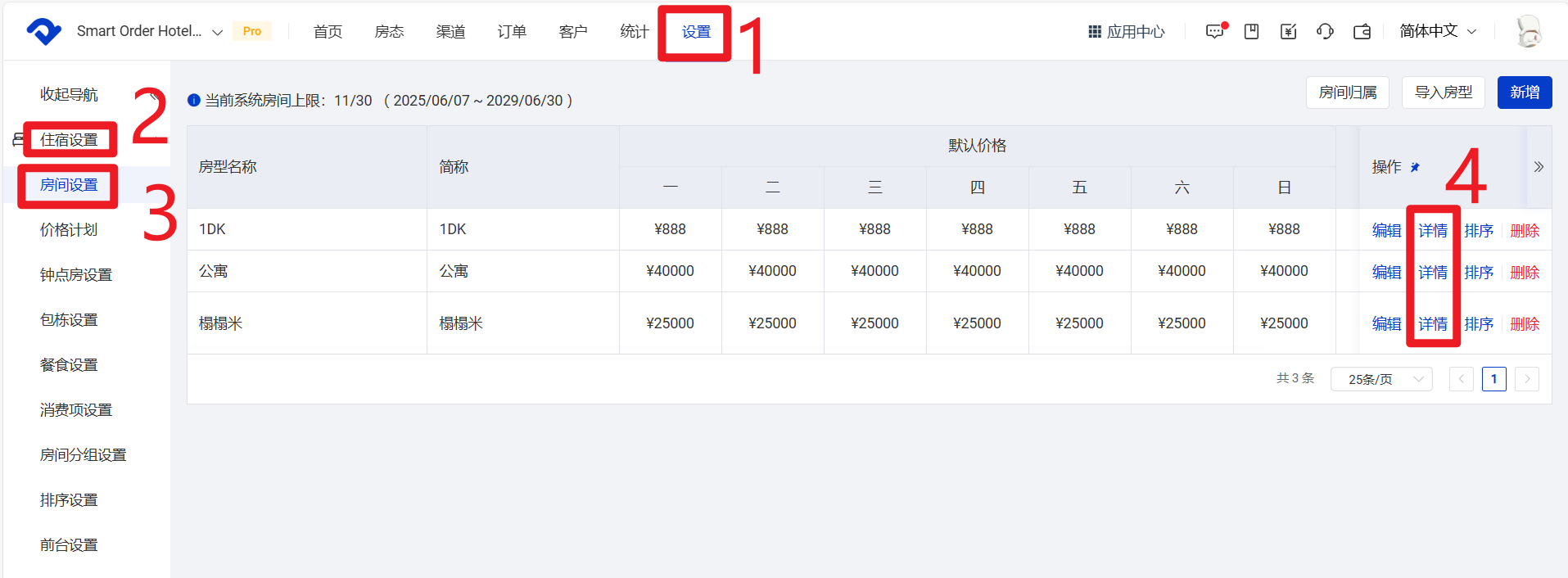 4 点击【详情】,为每个房型添加详情信息
