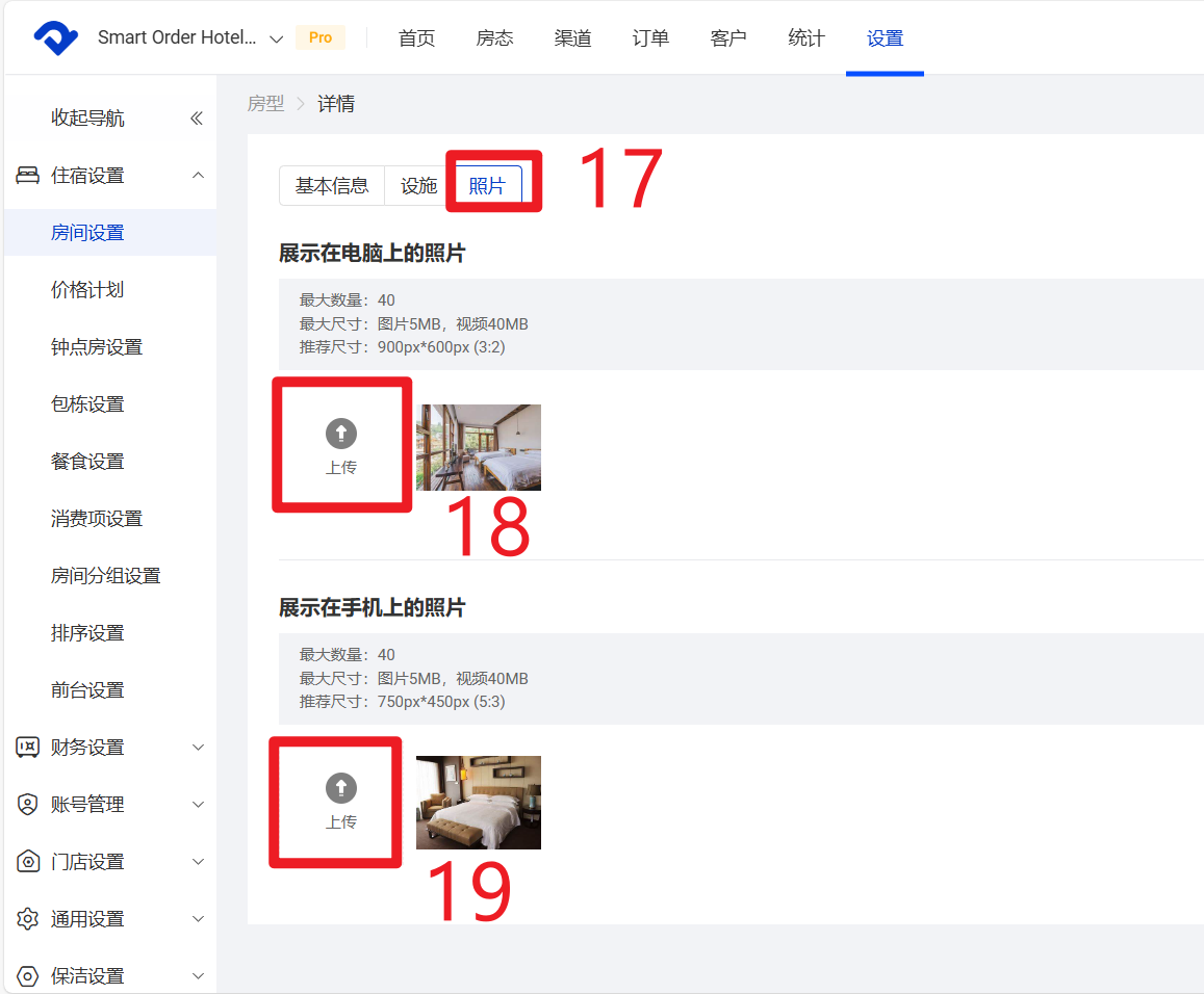 - 设置房型房间详情