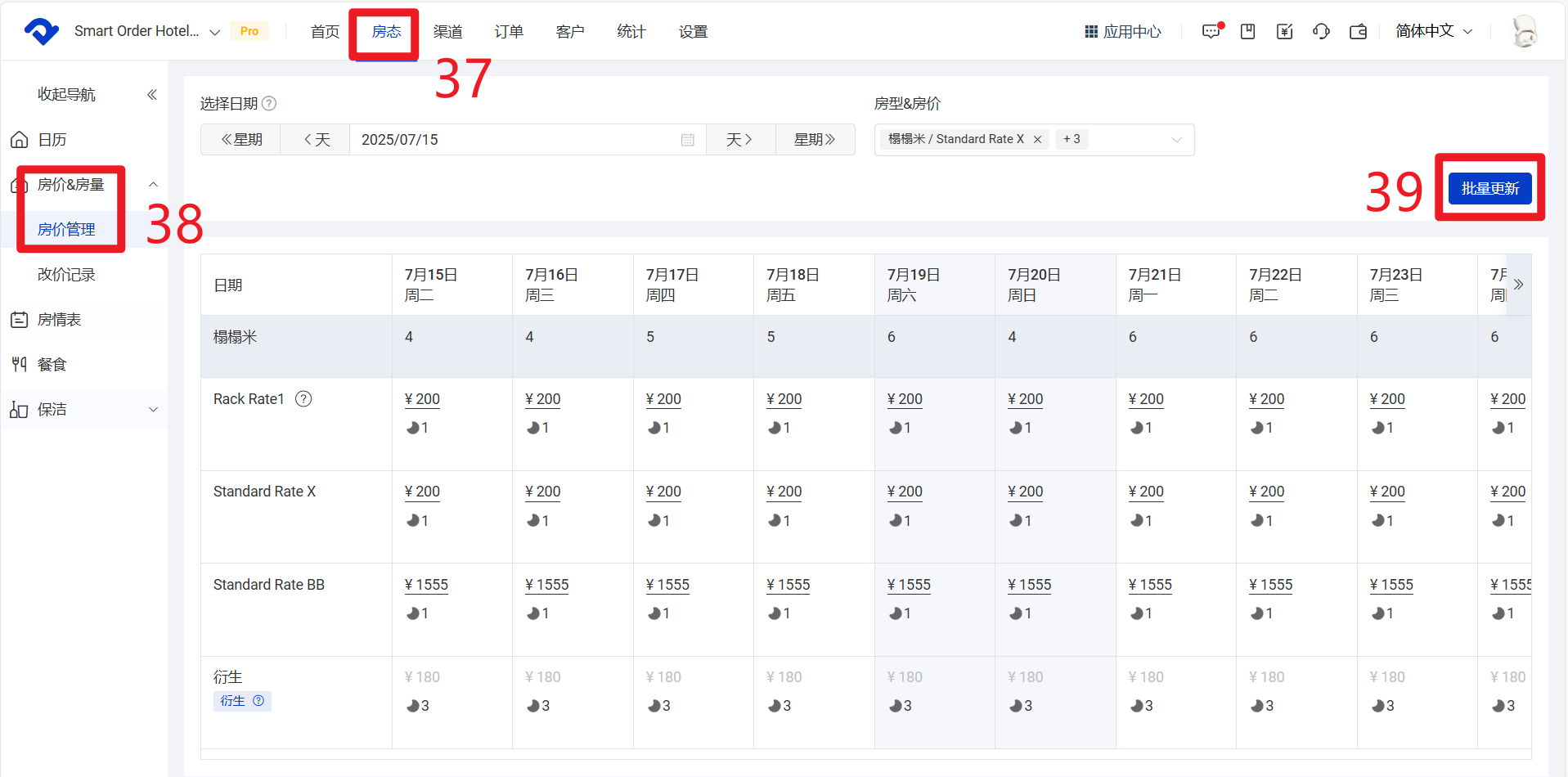 37 点击【房态】