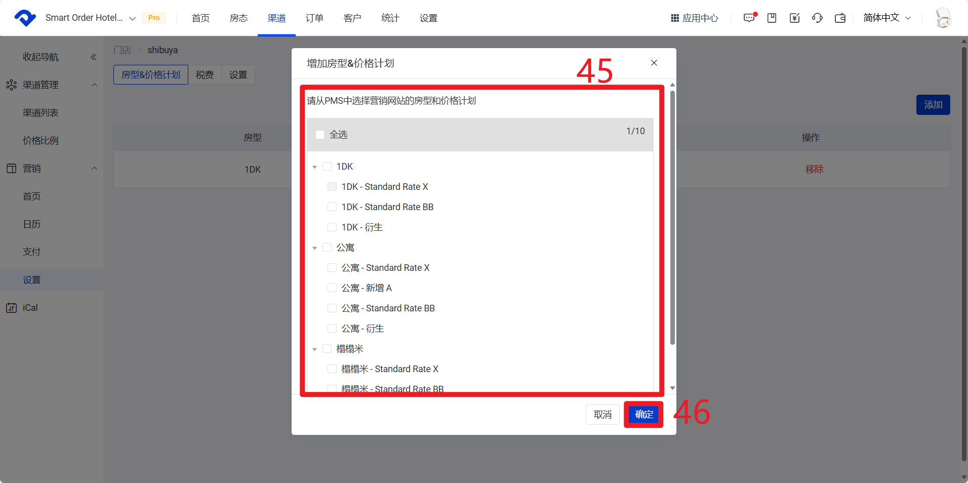 45 勾选应用于小红书、预约独立站的房型和价格计划