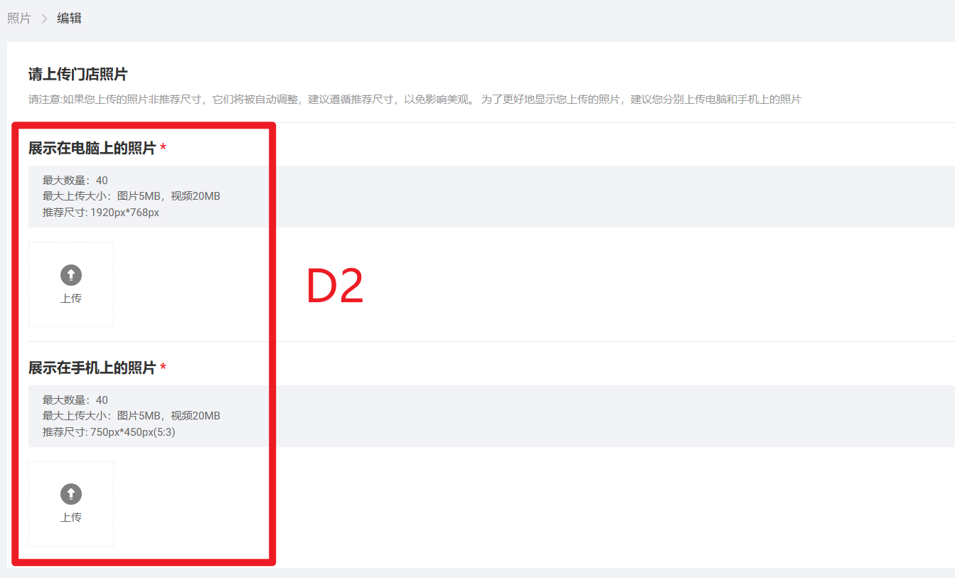 D2 点击【upload】,分别上传PC端和手机端展示的照片(同步骤31-6、31-7)