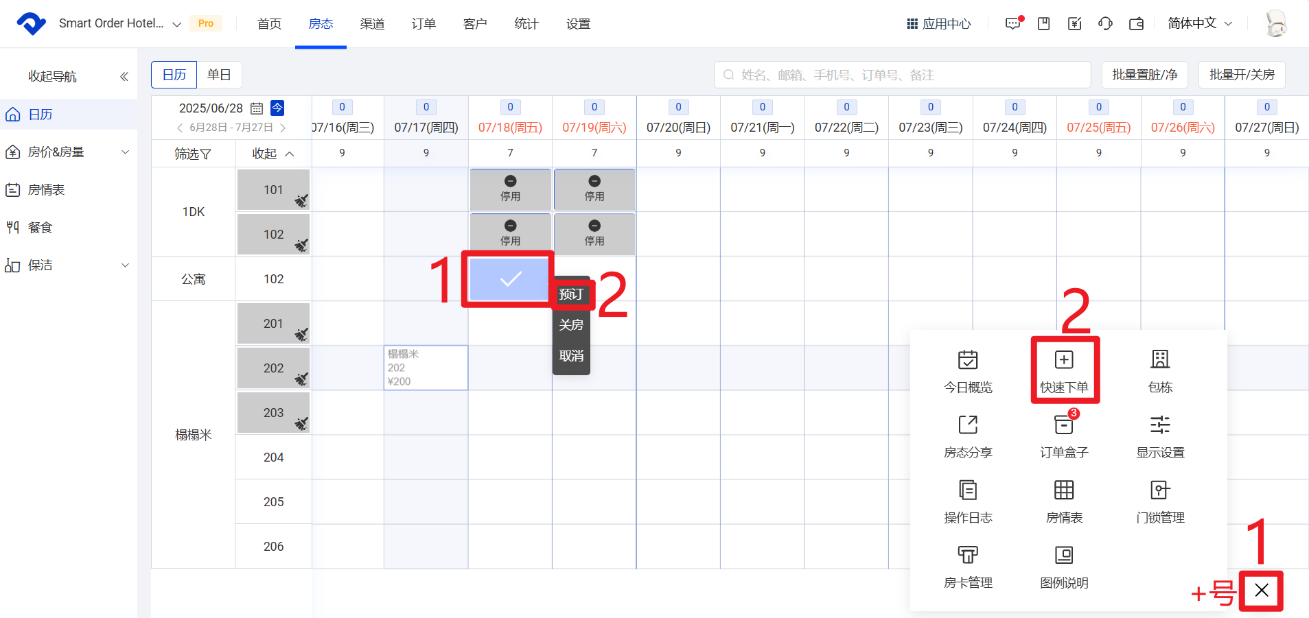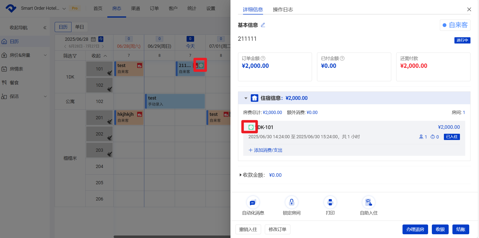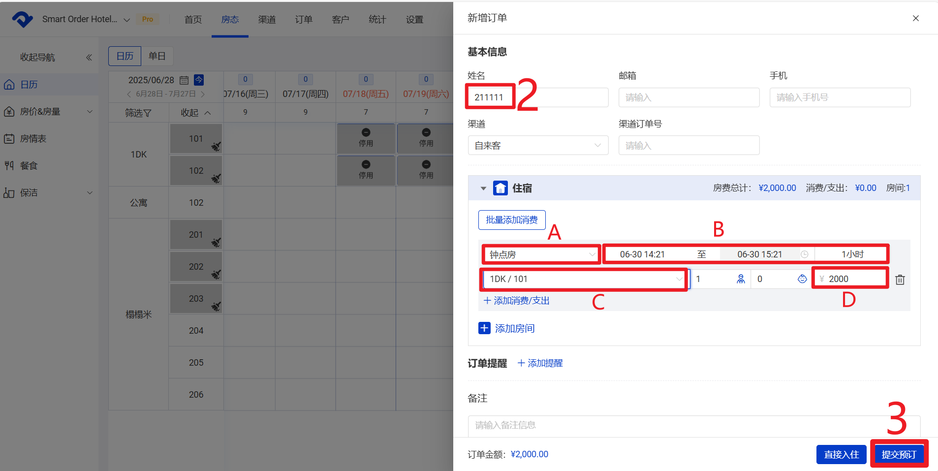 先参考文章【钟点房设置】,添加好钟点房房型之后才可以录入钟点房订单