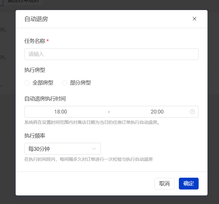 (二)、任务名称:系统可设置多个不同的自动退房规则,不同规则设置不同名称
