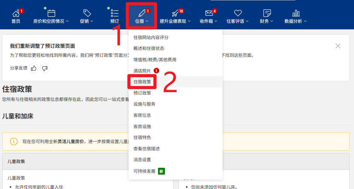 操作方法:住宿-预定政策-额外费用-修改-填写内容-保存