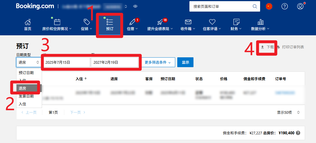 日期类型选择“退房”,可以导出未来所有未离店的订单