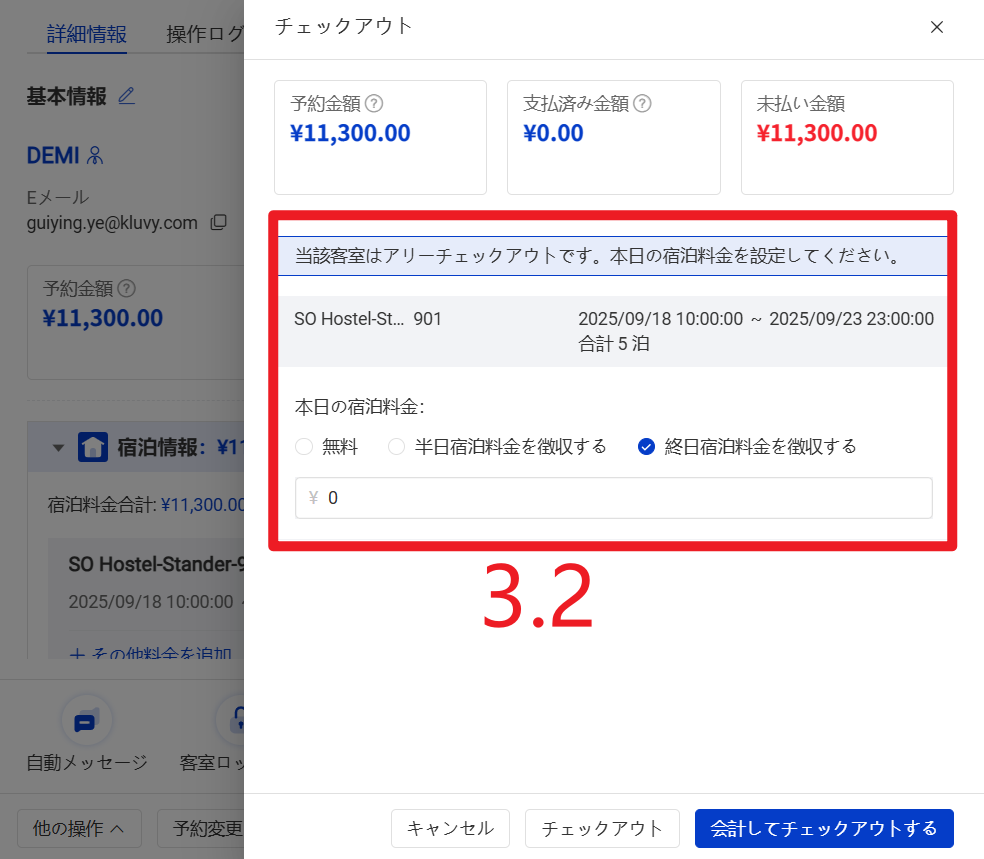 3.操作した日付とチェックアウト日に応じて2つのパターンが表示されます: