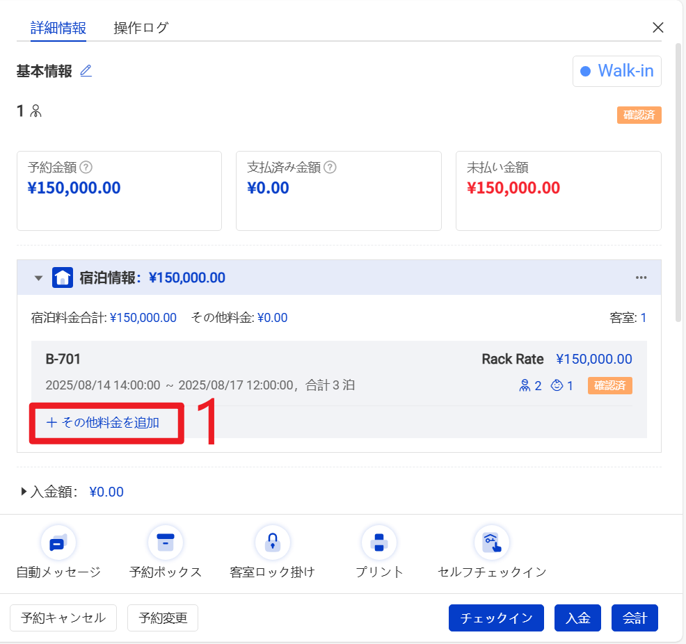 操作パス:カレンダー-予約を選択-その他料金を追加