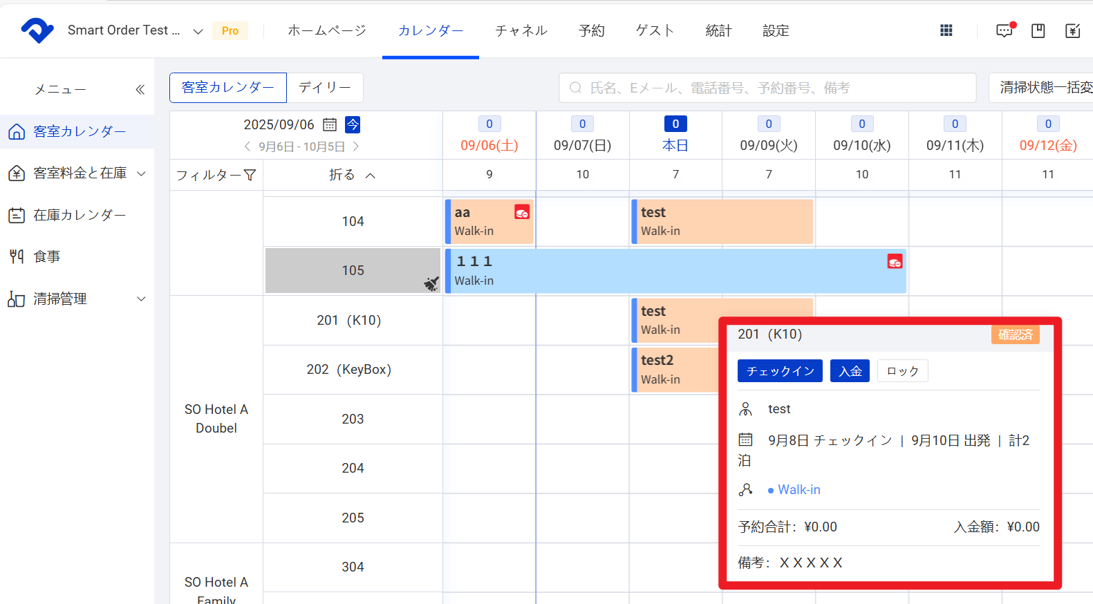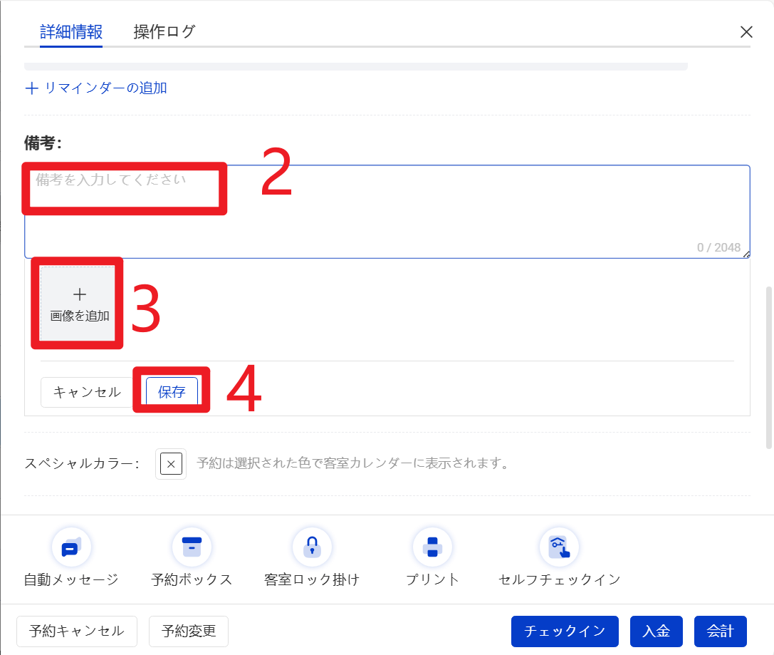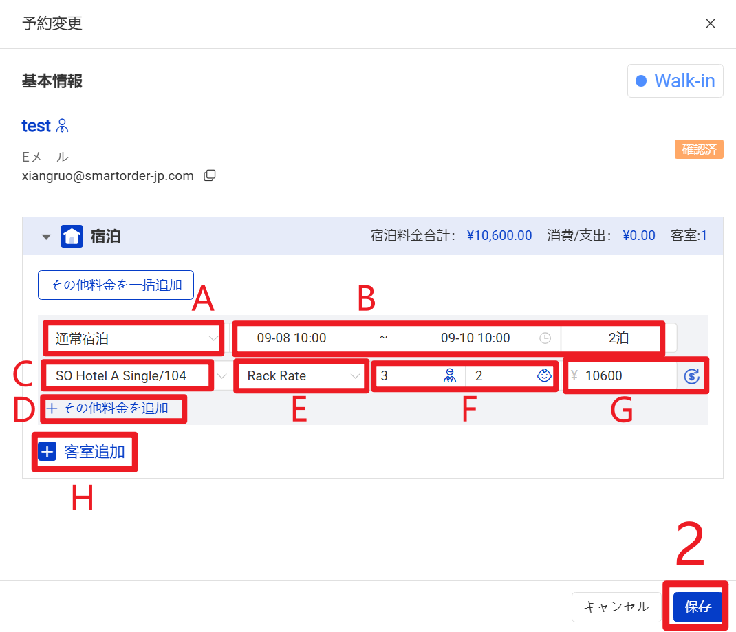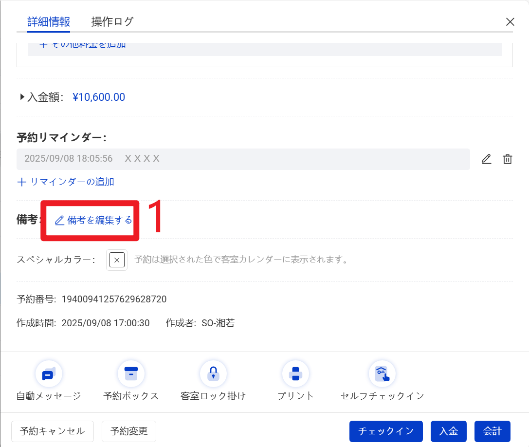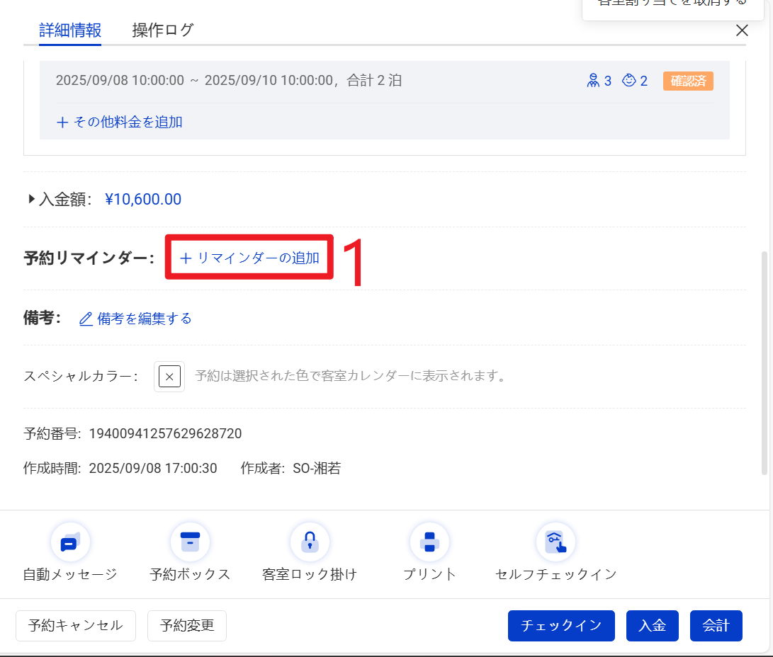 ※ 直連 OTA 予約を手動で入力した場合、予約ステータスは OTA 側と同期されません。