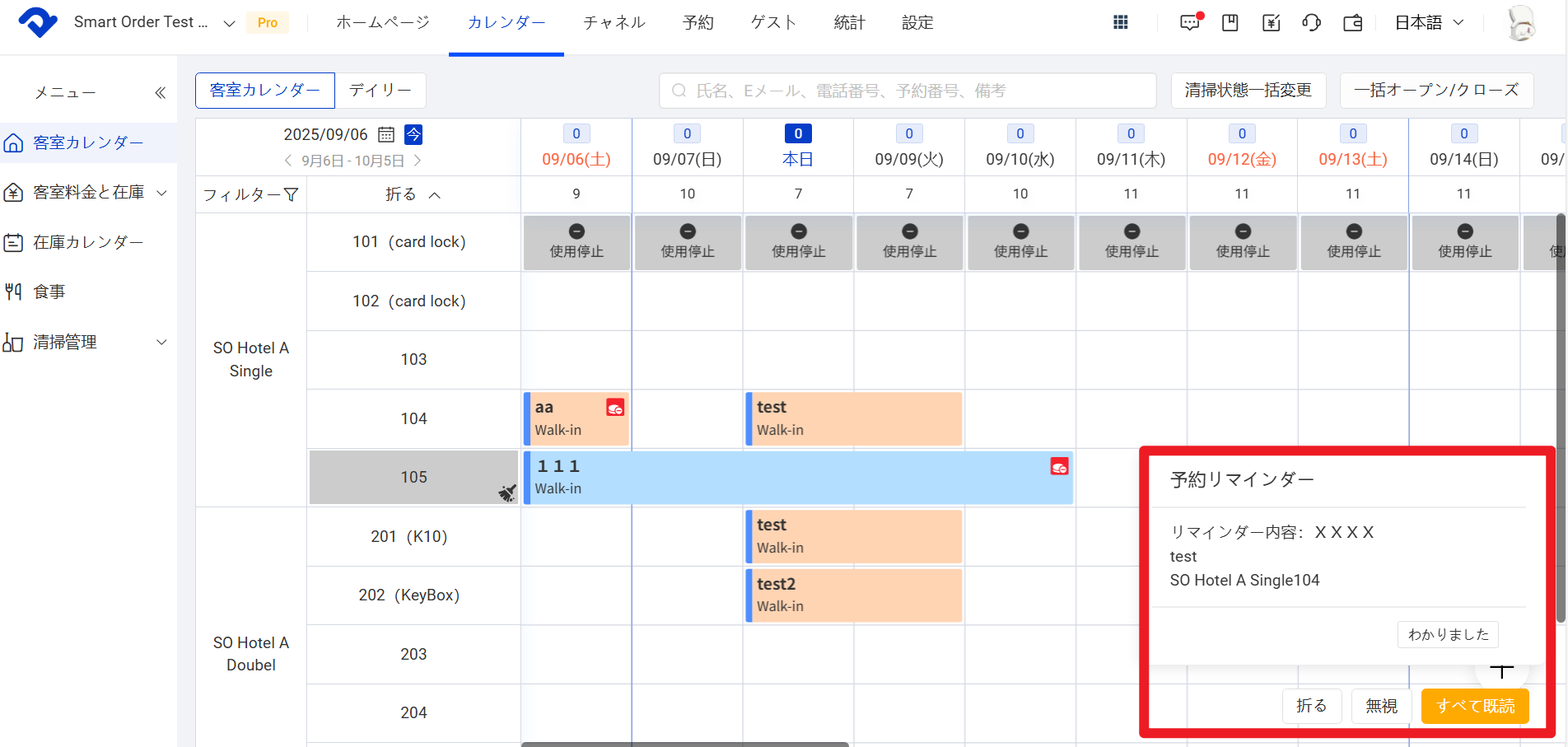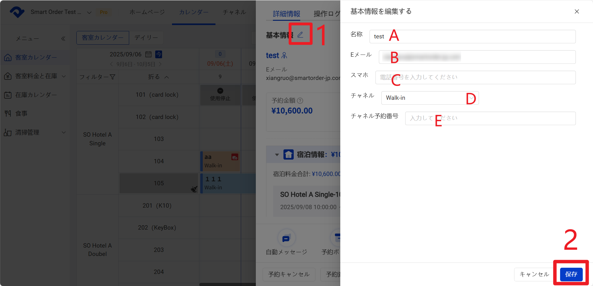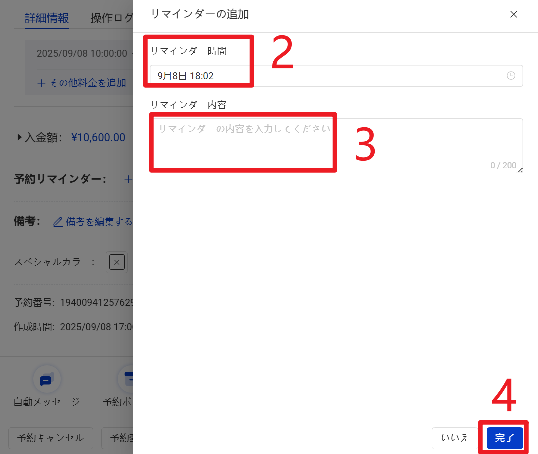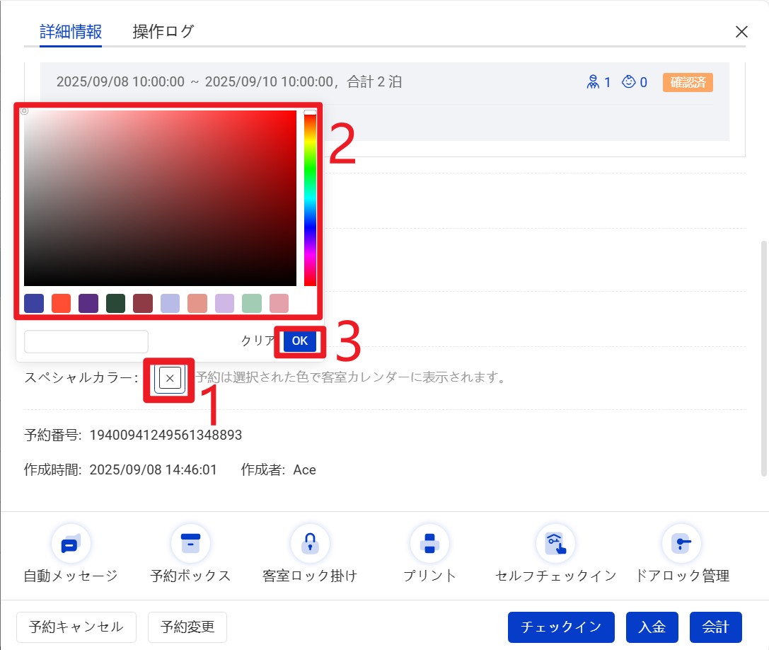 ※ 直連 OTA 予約を手動で入力した場合、予約ステータスは OTA 側と同期されません。