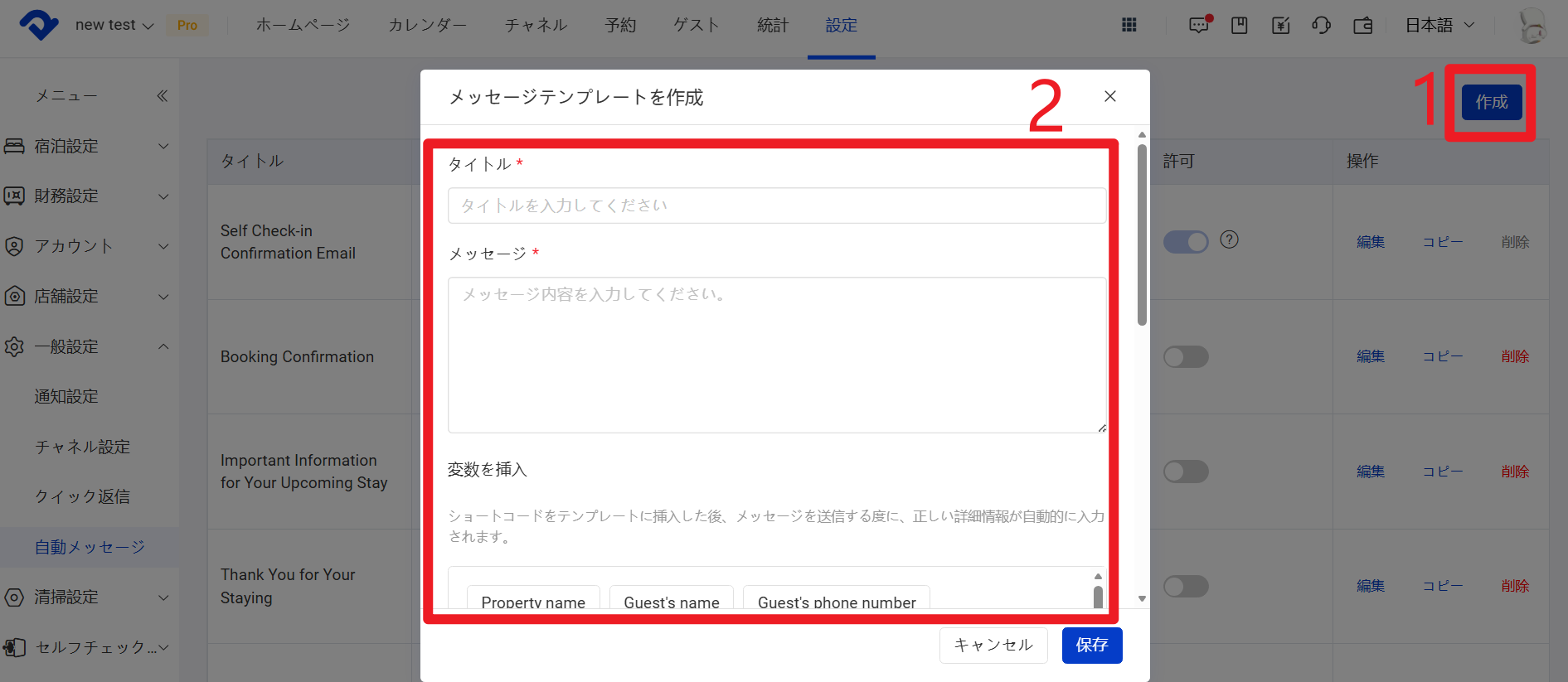 2.ゲストへ送信するメッセージ内容を設定