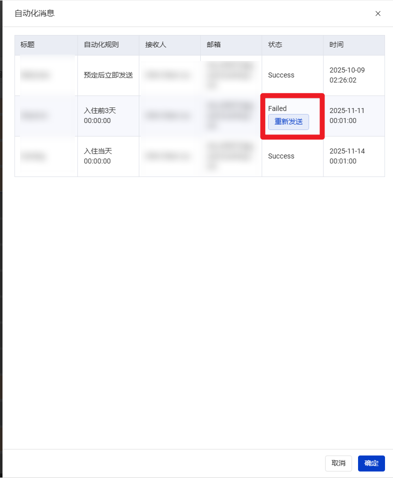2.送信ステータスが【Failed】の場合は、【再送信】ボタンをクリックして再送が可能です。