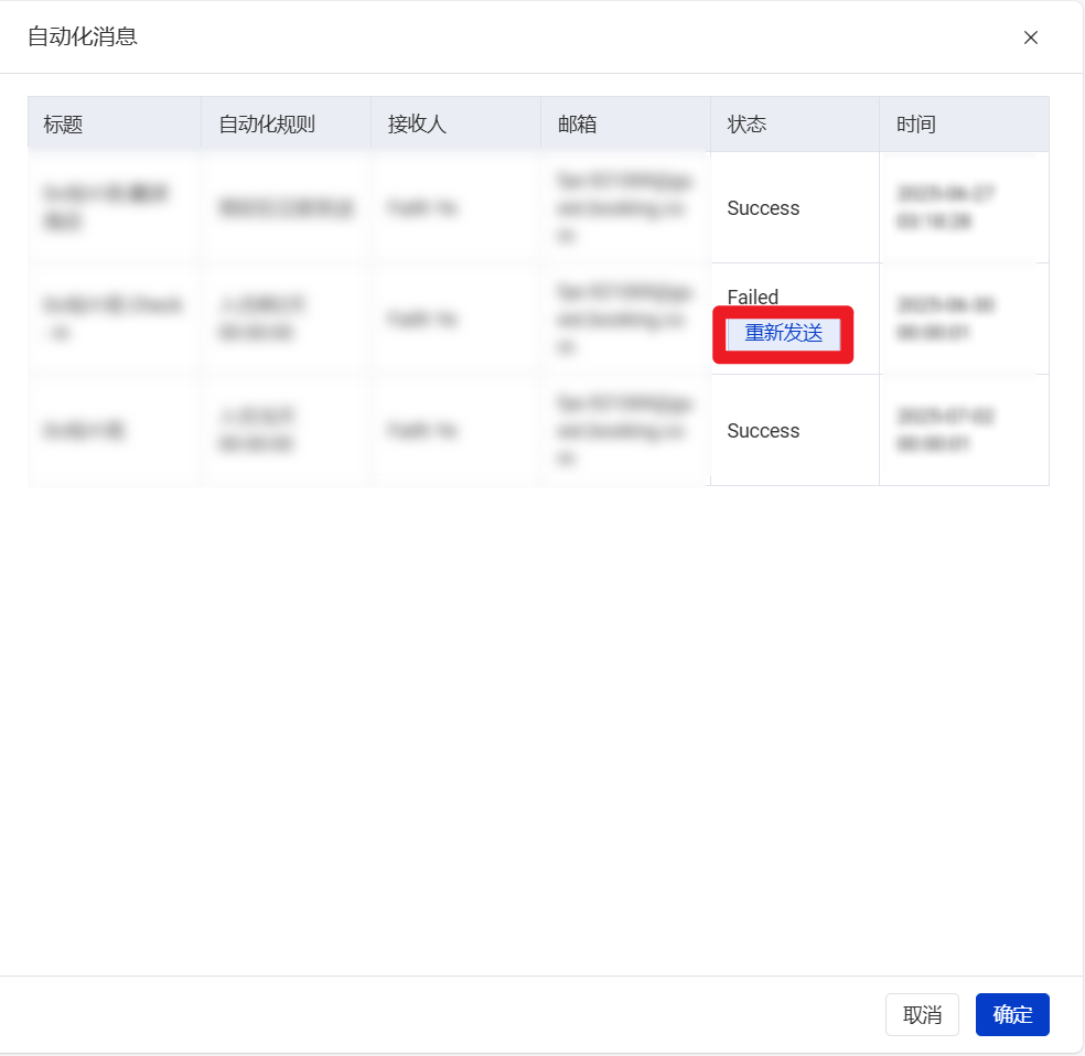 2.如果发送状态为【Failed】,可以点击【重新发送】,尝试重新发送消息