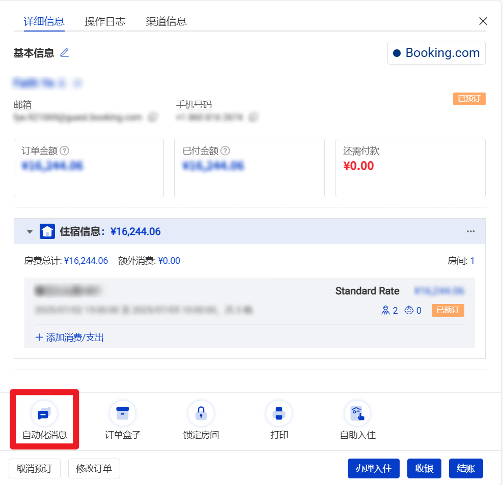 操作方法:【房态】-点击订单-【自动化消息】-重新发送
