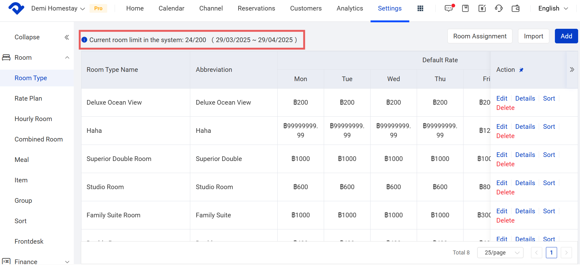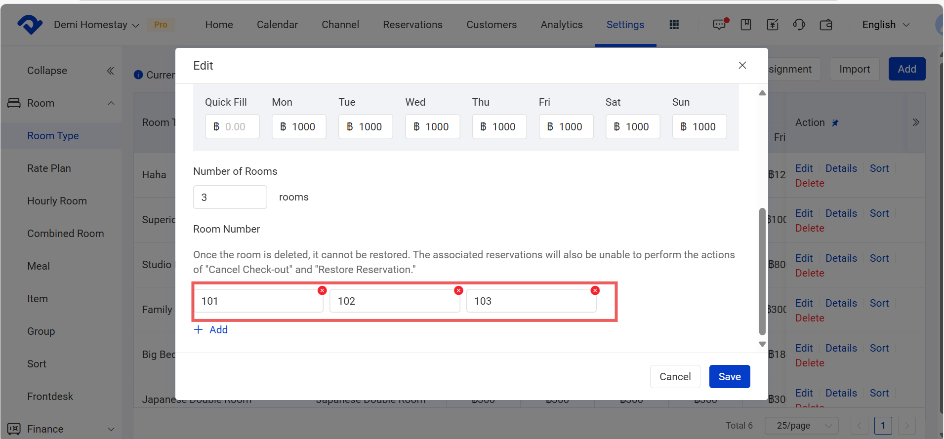 There must be various room types for every owner. And to add room types is the first step to manage the reservations. We need to learn to add/delete room types. If there are some changes in the room assignment, we can also make it.