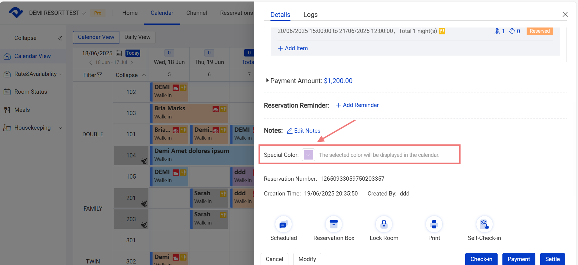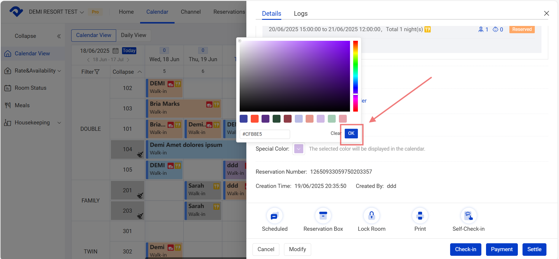To make the reservation special enough to stand out, you may add a special color to a reservation.