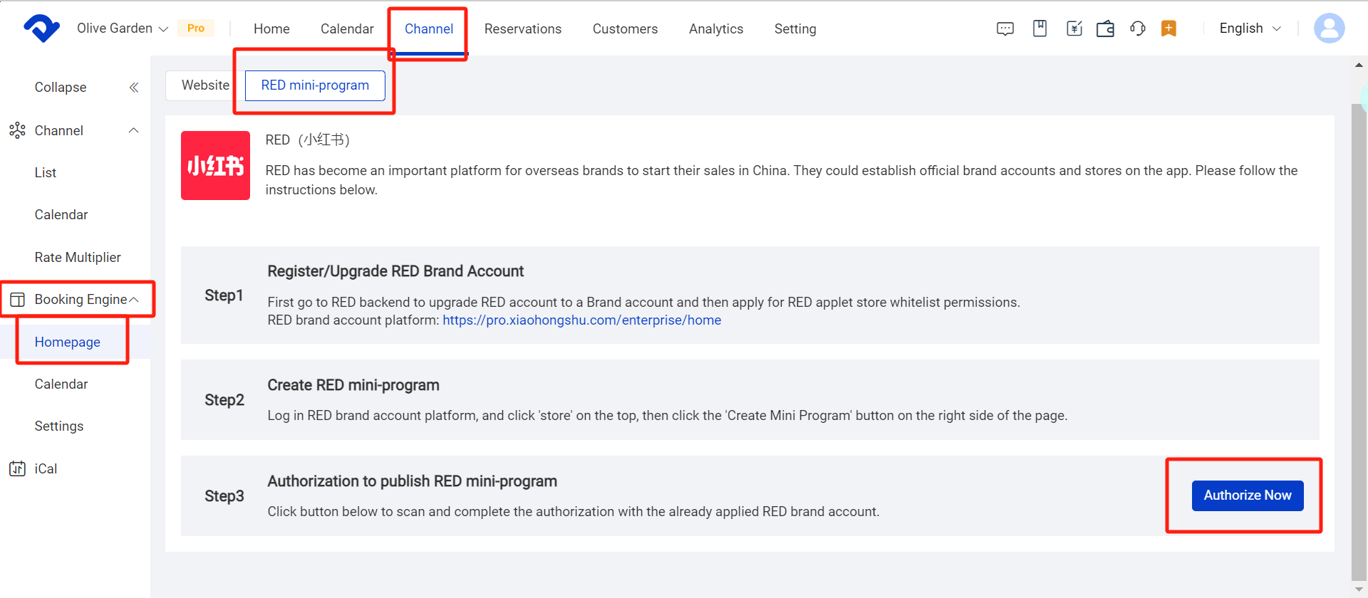 Click 'Authorize Now' button on PMS to scan and complete the authorization with the already applied RED brand account.