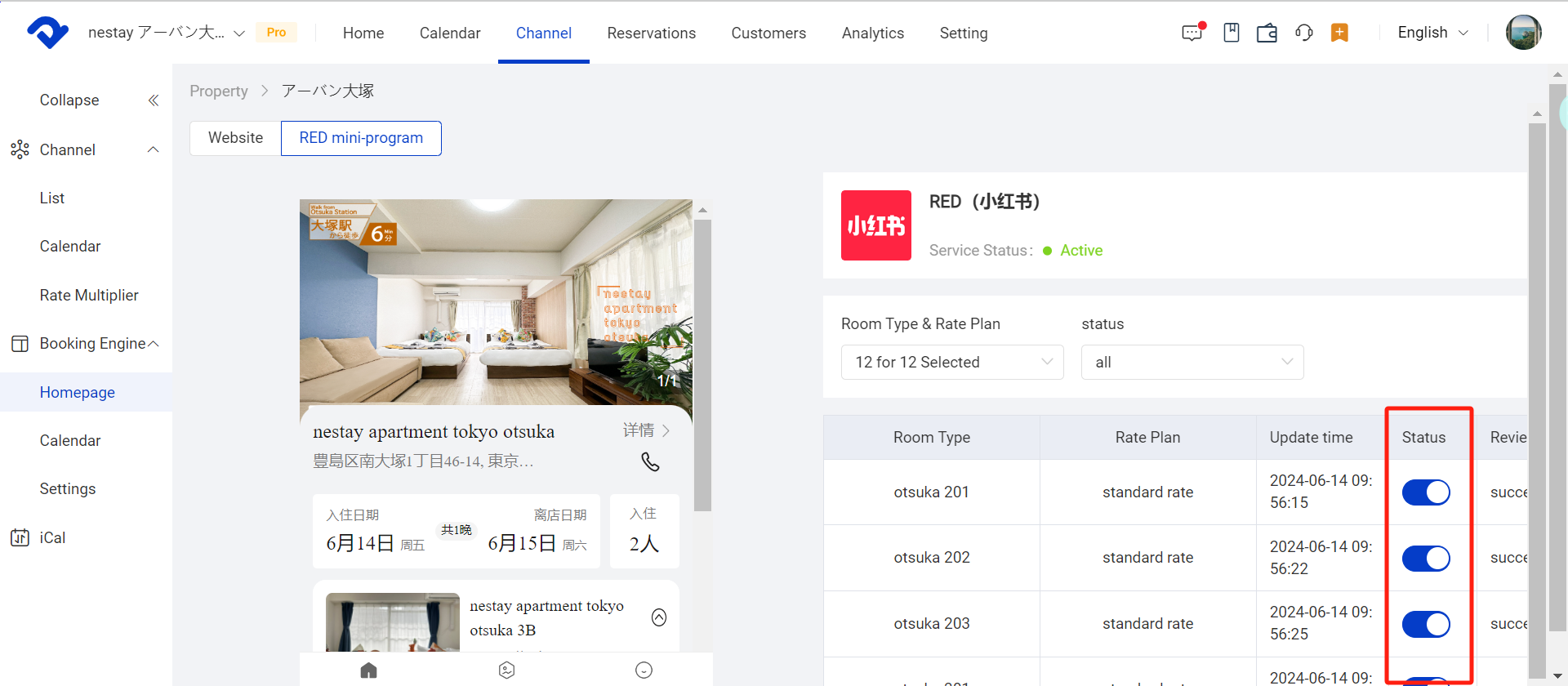 The rooms & rate plans on Red mini program will be the same as Booking Engine rooms & rate plans.