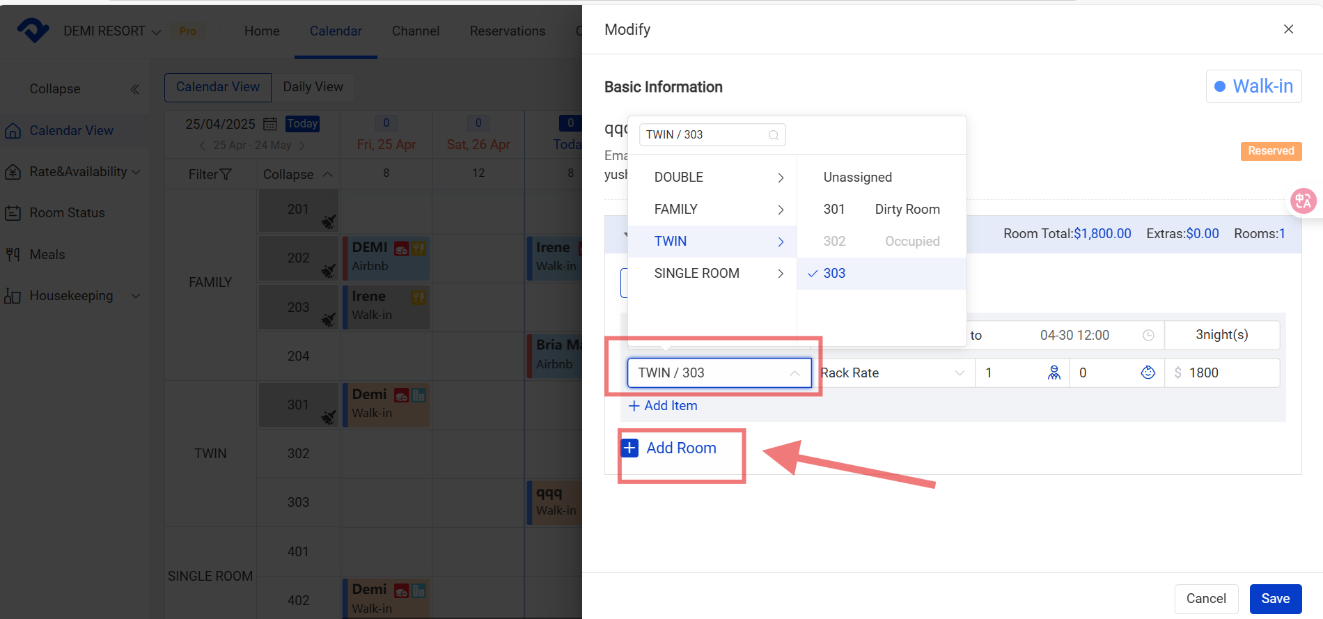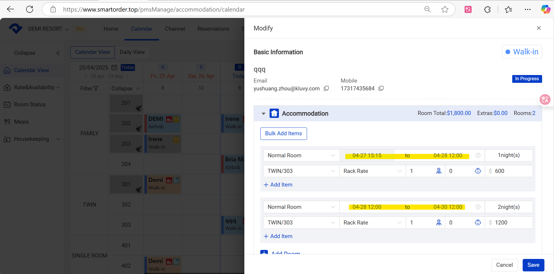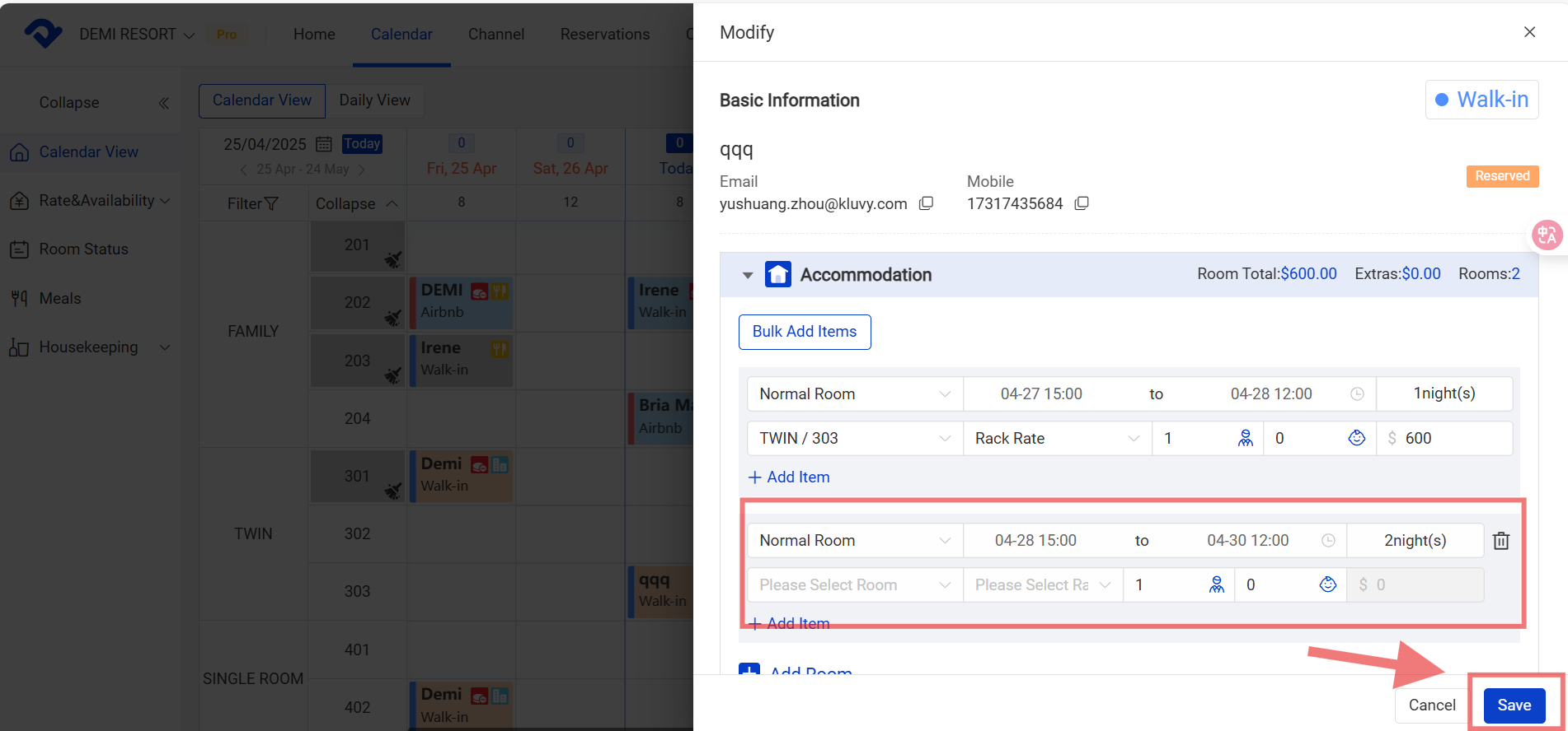 When adding a room to a reserved one, pay attention to the date settings. The data should be accurate to satisfy the customer's needs.