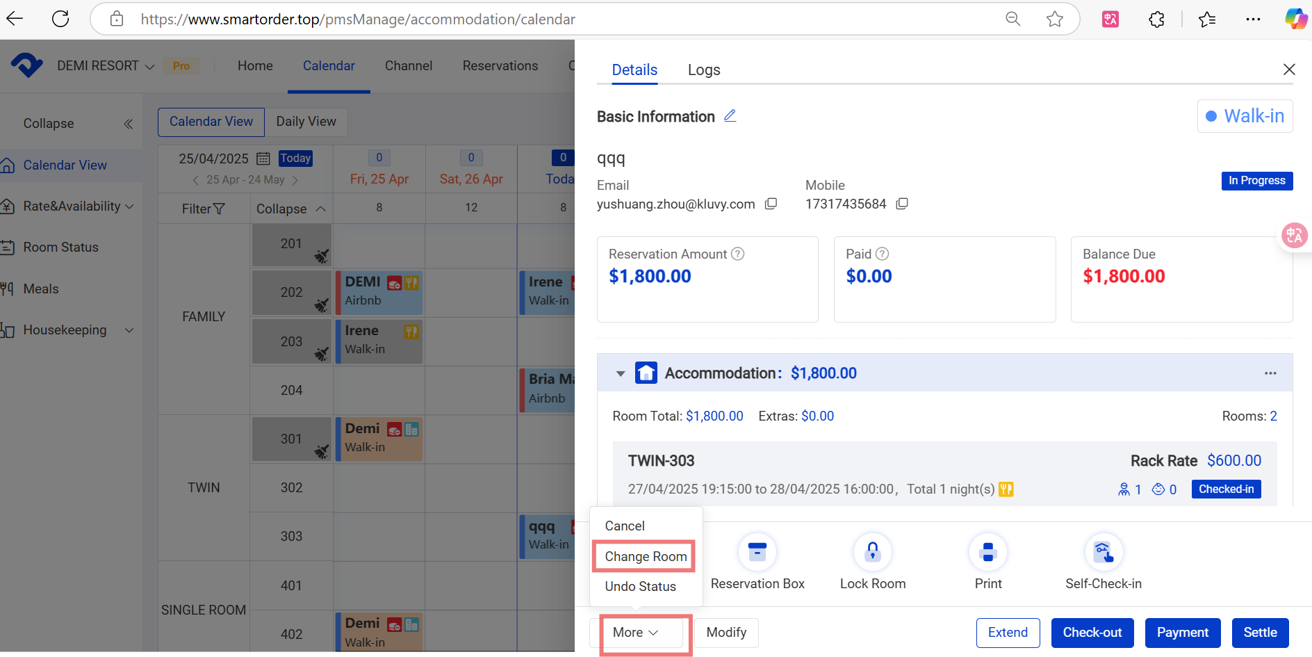 Step2: Select the room under Please Select Room After Change and click Confirm.
