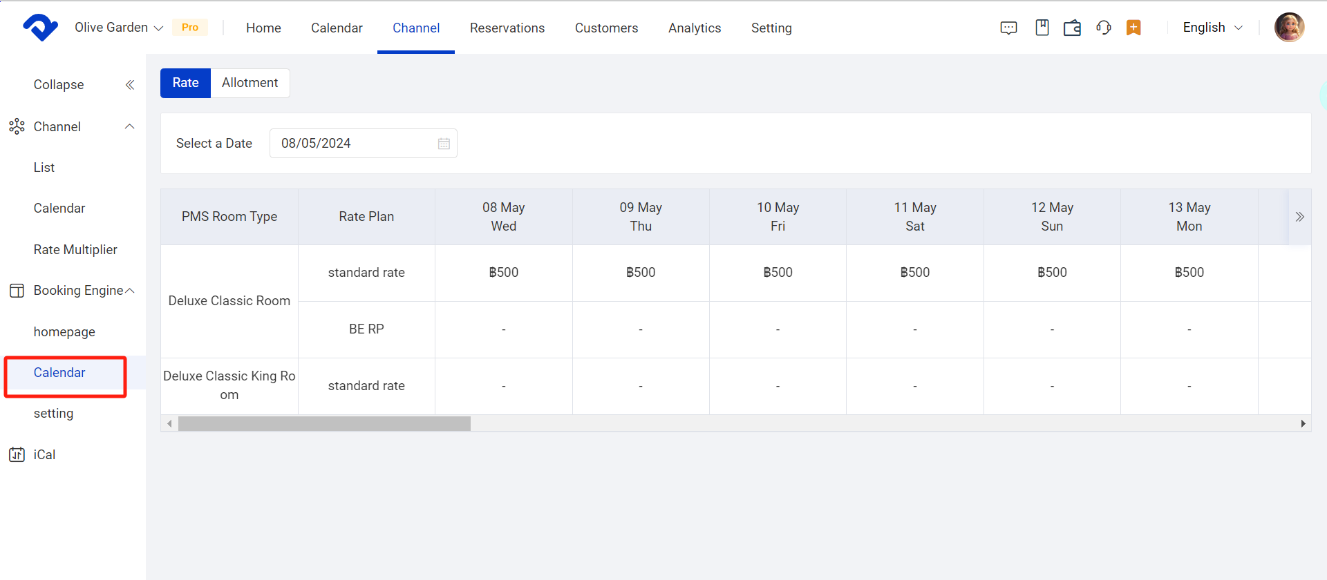 2. Click the Calendar in the Booking Engine-Calendar drop down