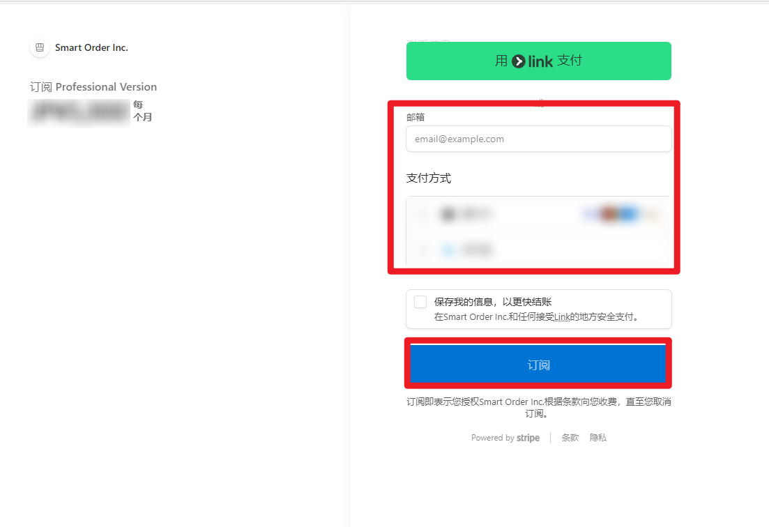 8.填写有效邮箱、并选择支付方式--输入支付信息后,点击【订阅】