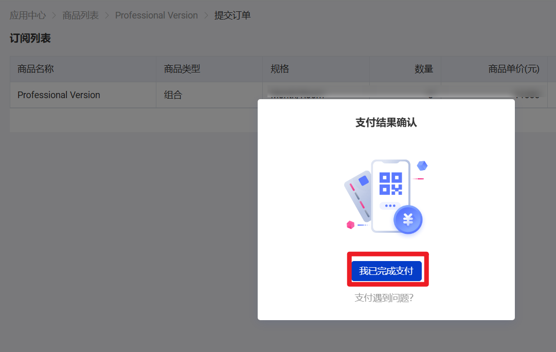 9.完成订阅,回到系统,点击【我已完成支付】。系统自动升级至专业版
