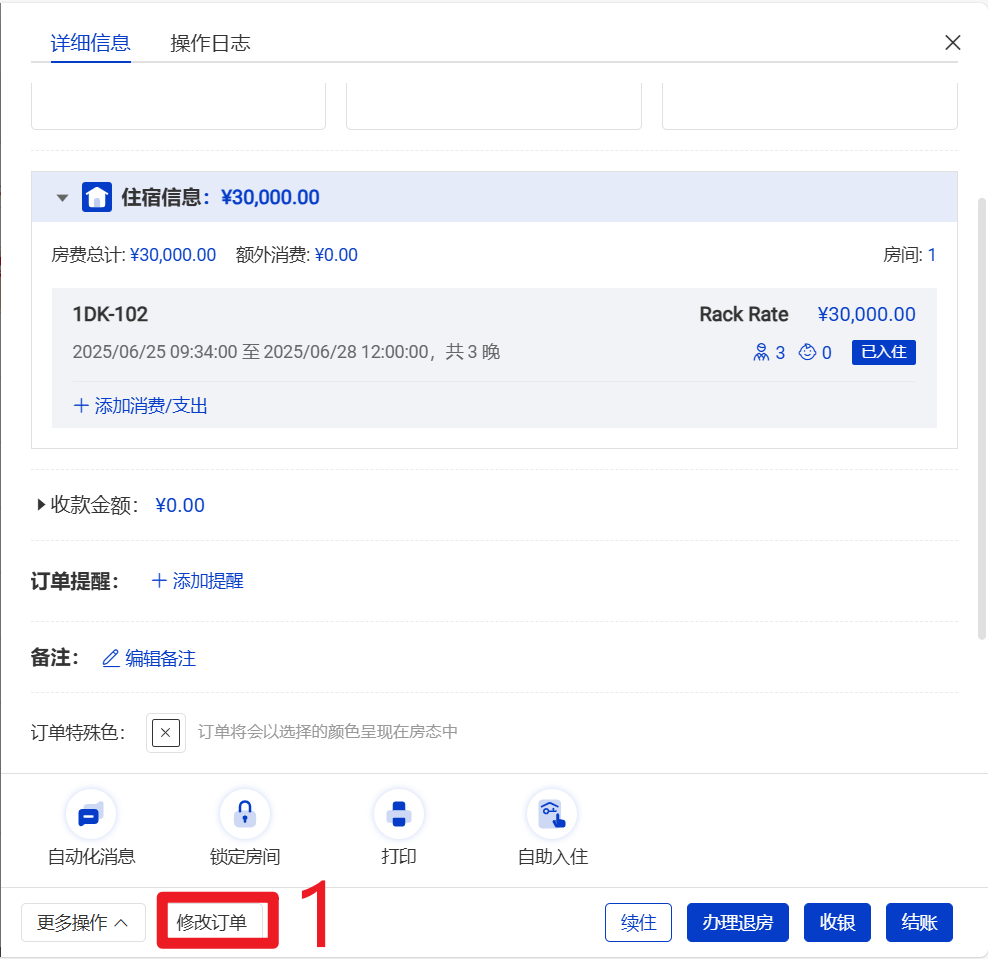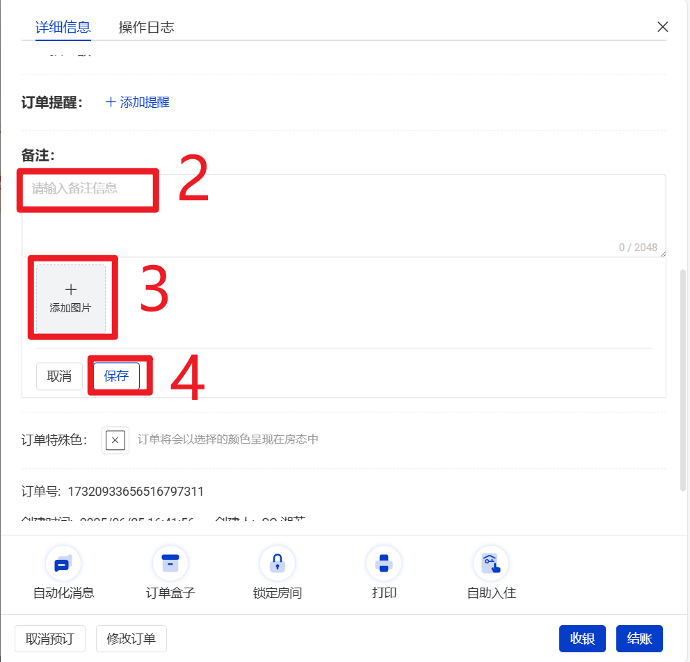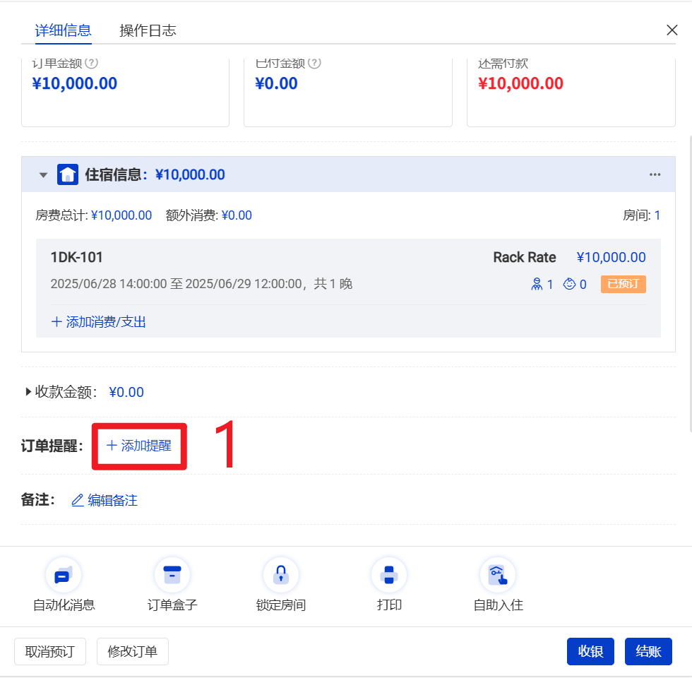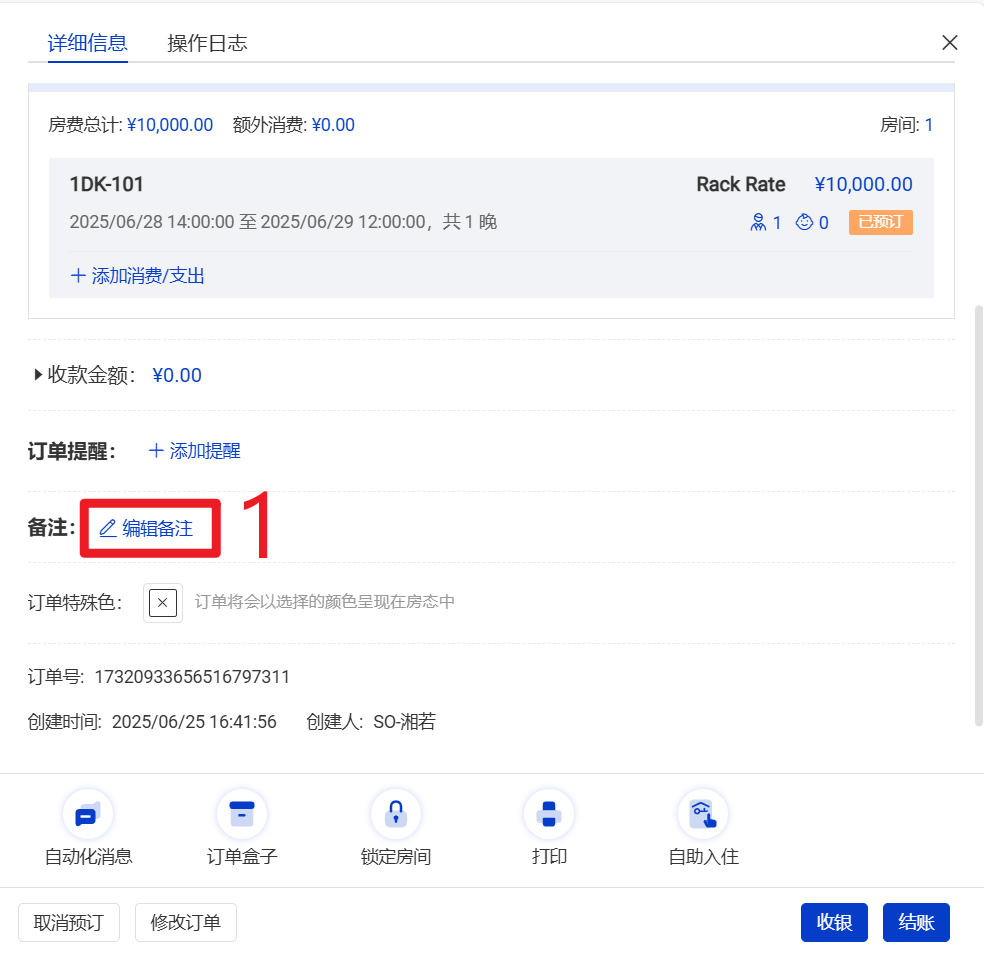※手动录入直连的OTA渠道订单,订单状态不会和OTA同步
