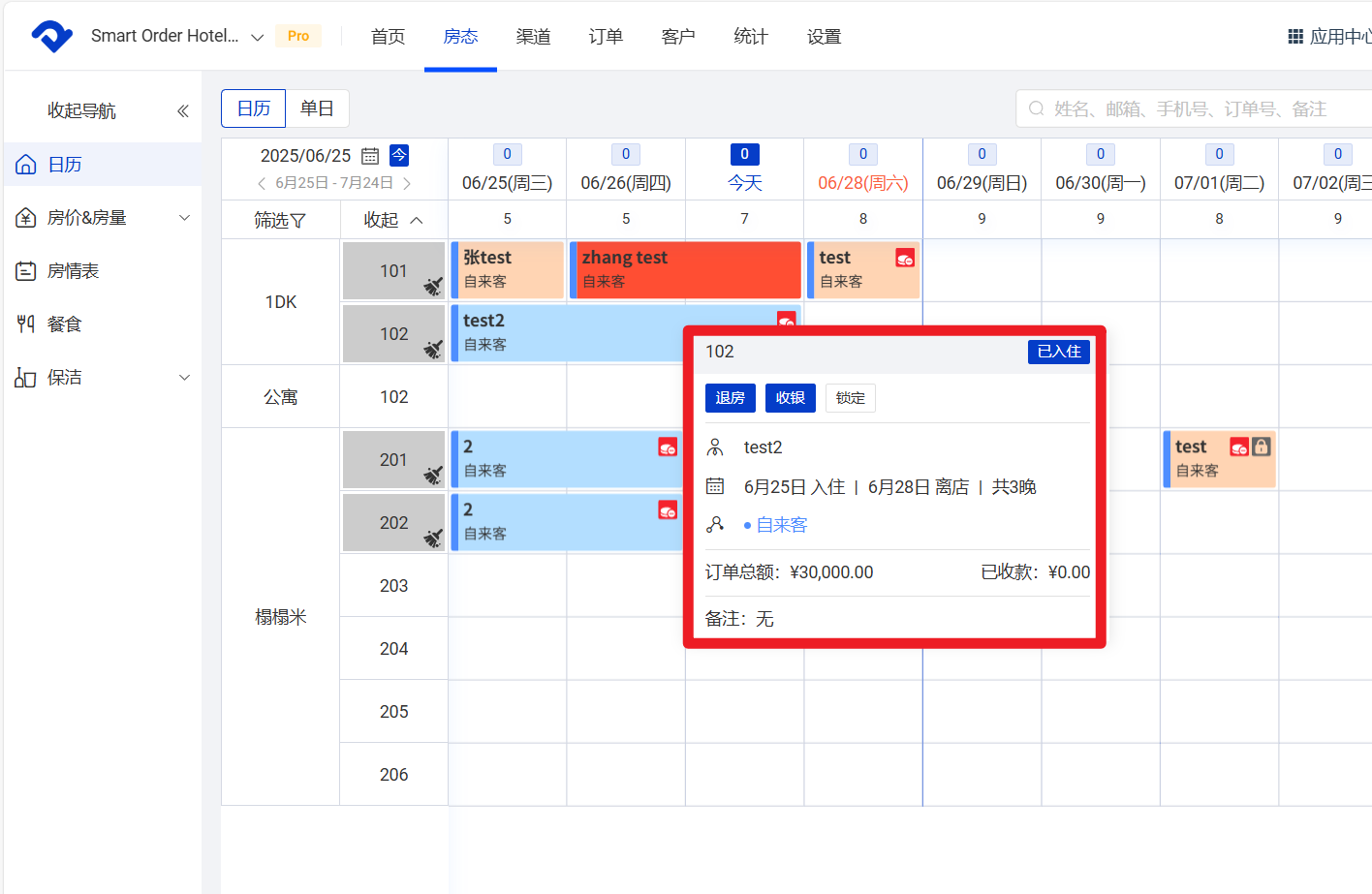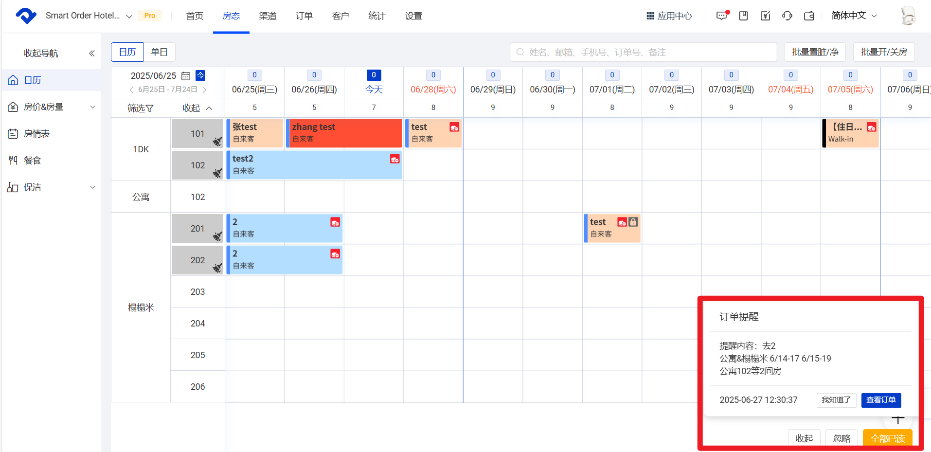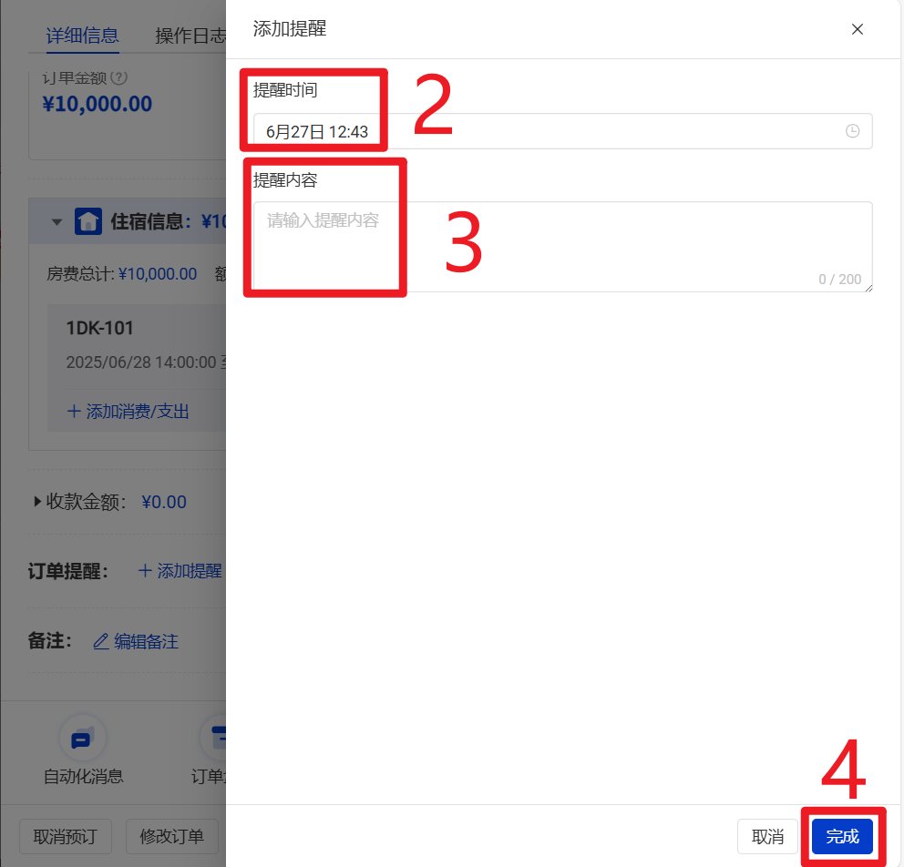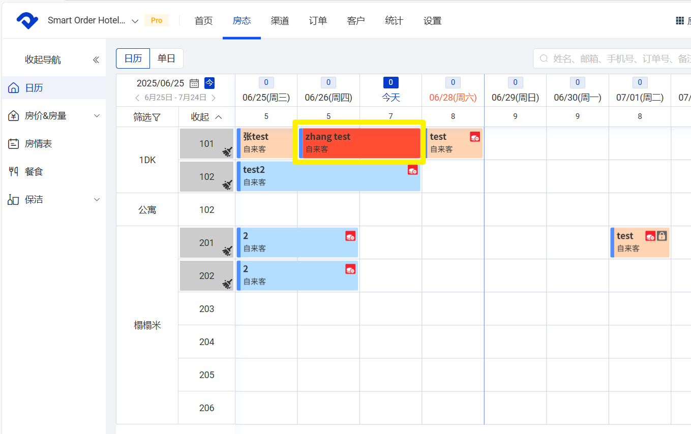 ※手动录入直连的OTA渠道订单,订单状态不会和OTA同步