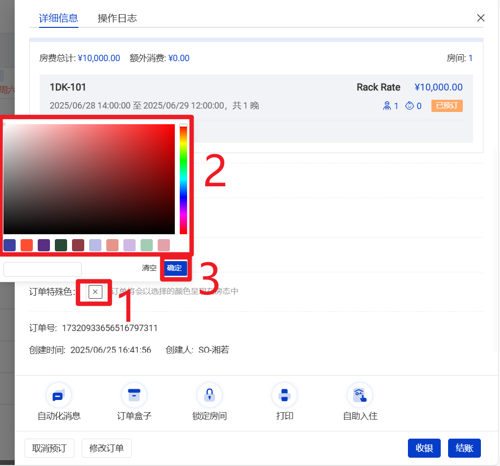 设定特殊颜色后,该订单在日历上会显示成您设定的颜色