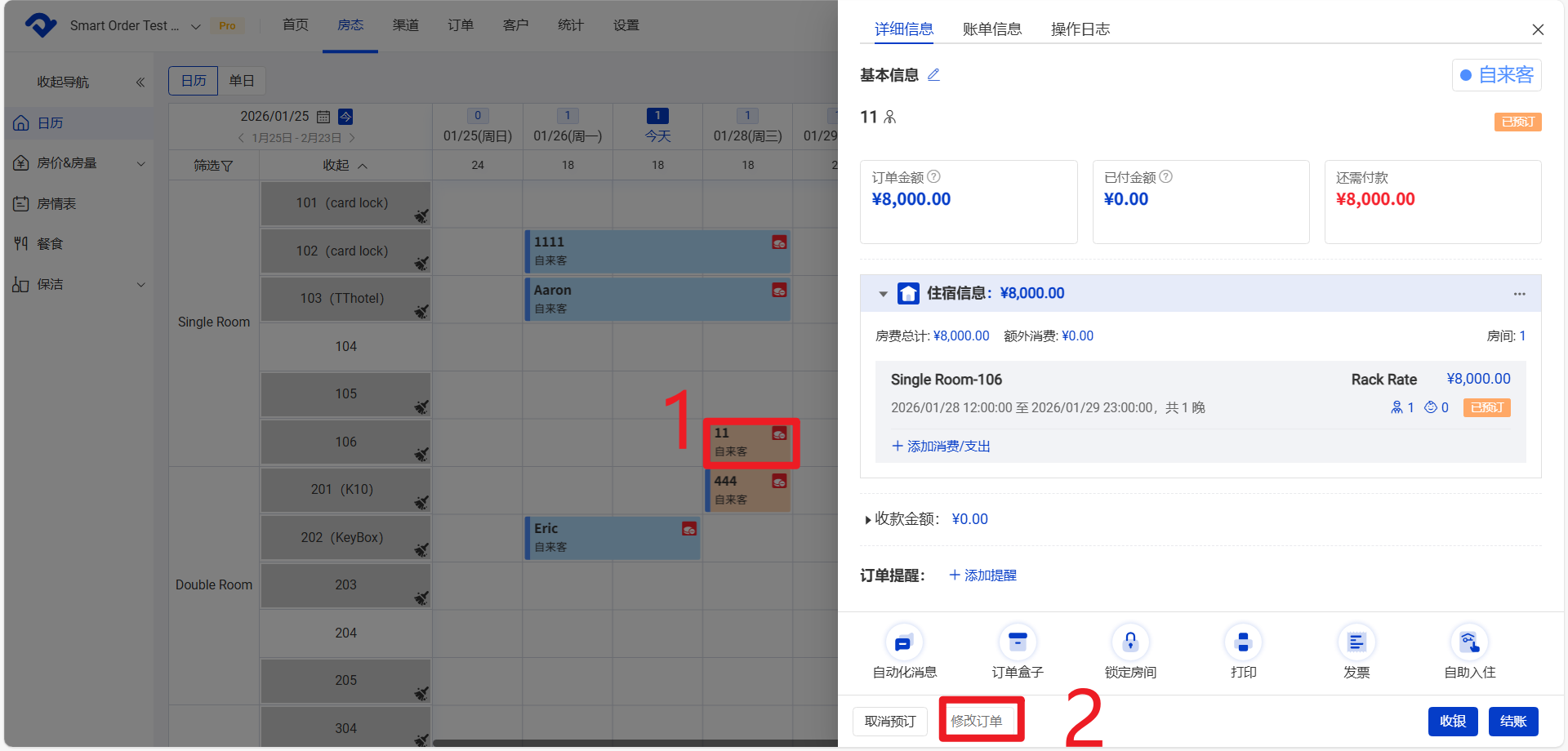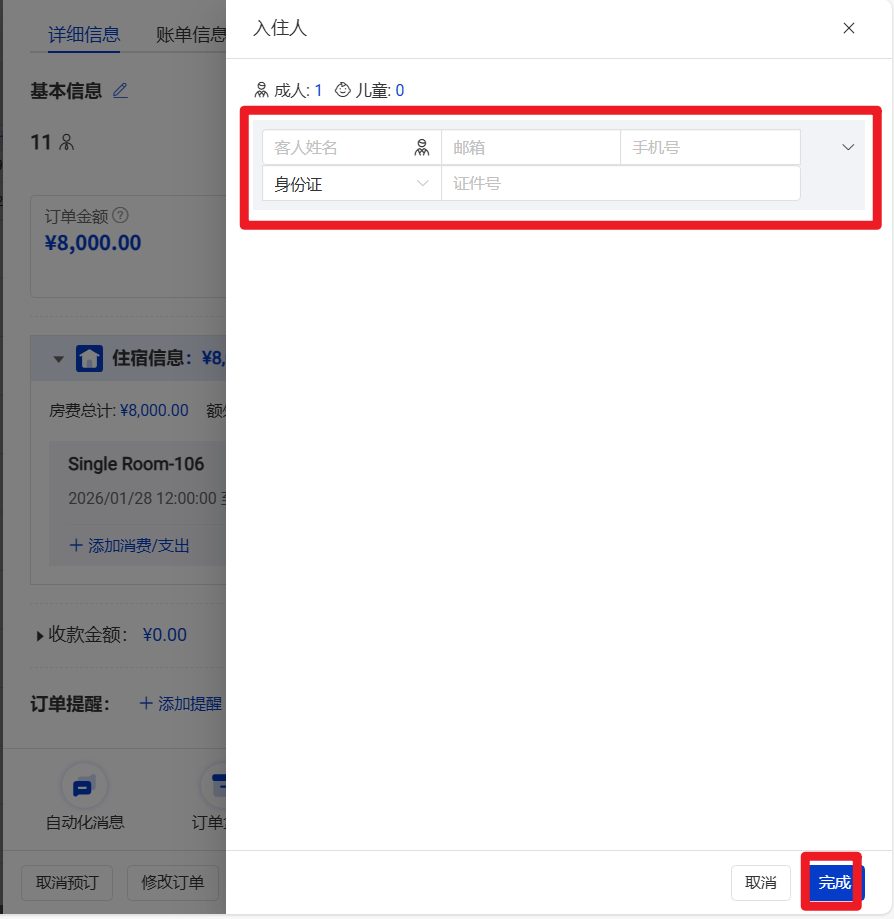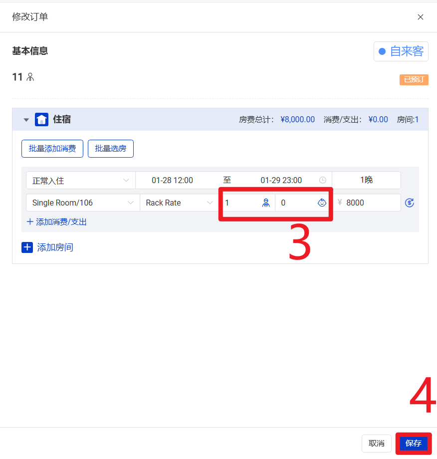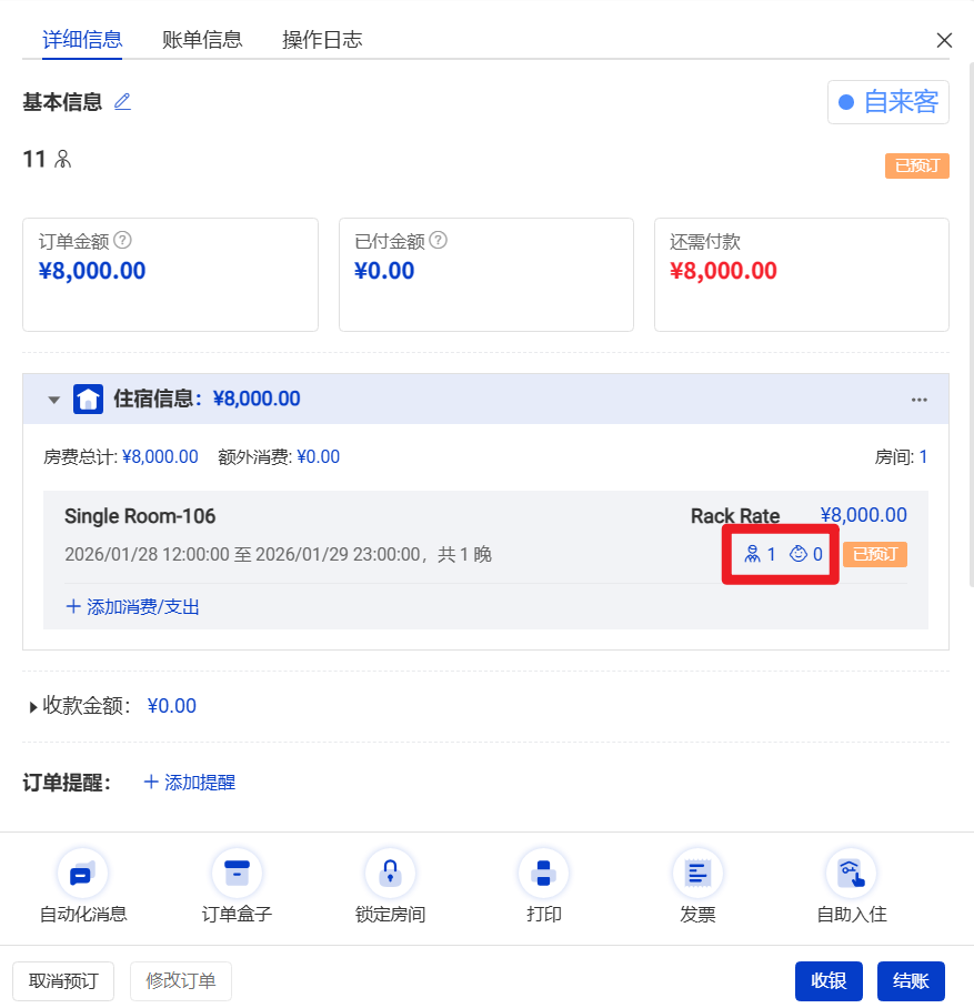 ※手动录入直连的OTA渠道订单,订单状态不会和OTA同步
