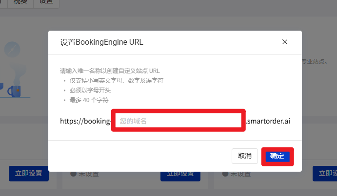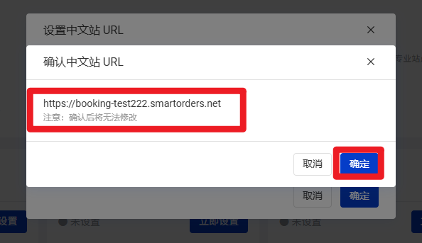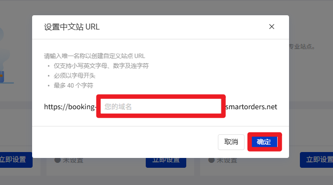 ・国内站域名格式为booking-{自定义名字}.smartorders.net