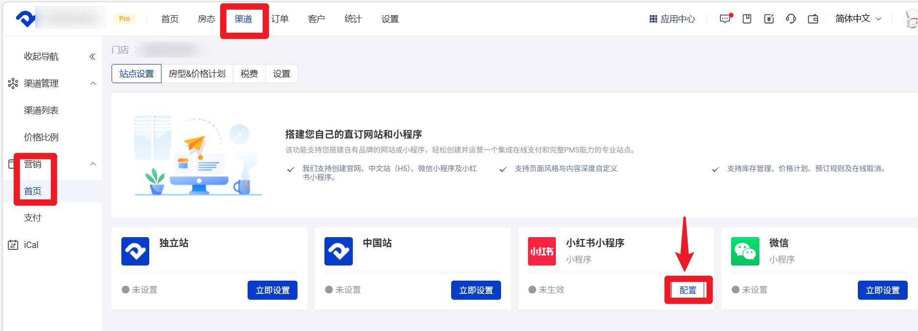 设置入口:渠道-营销-首页-独立站/中国站的【立即设置】
