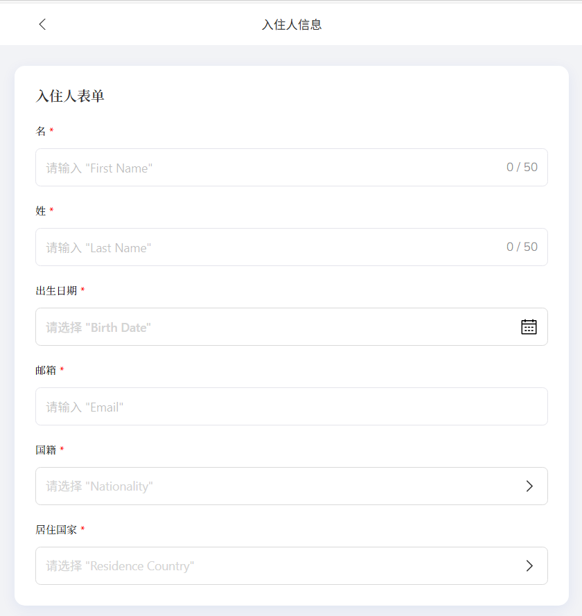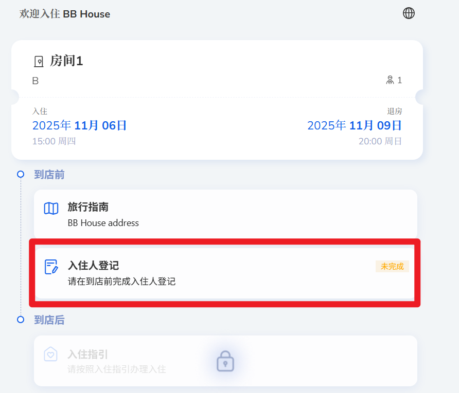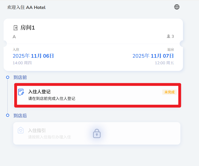 8.1 如商家未设置需入住人填写入住人表单和完成身份认证,则客人不需要完成以上登记步骤