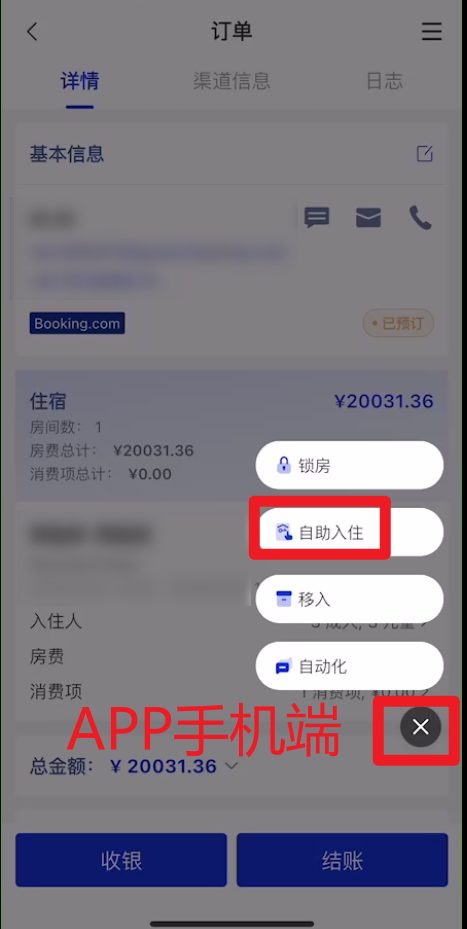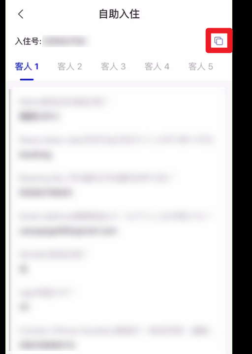 (1)方法1 点开订单的【自助入住】板块--复制入住码