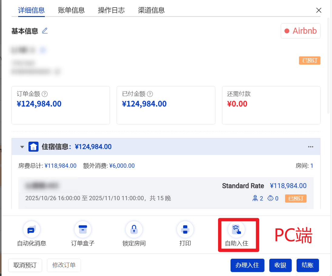 (2)方法2 入住码也会展示在系统发送的自动化消息里面。
