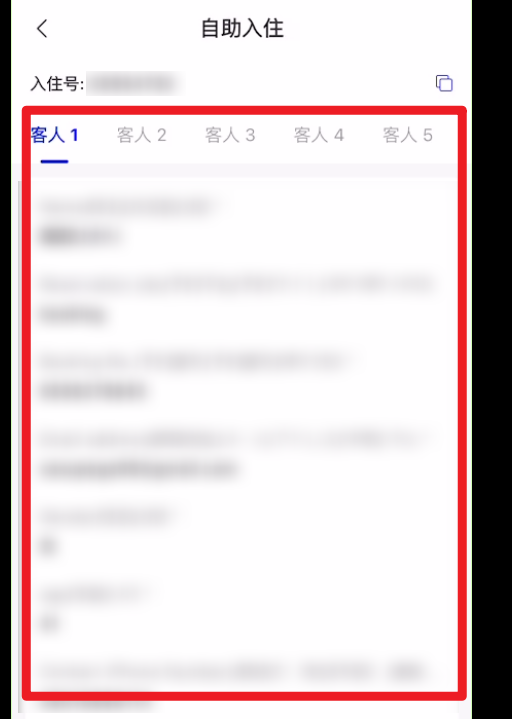 方法1:点开订单的【自助入住】板块--客人已填写信息并提交后会展示在下方【入住人登记】内