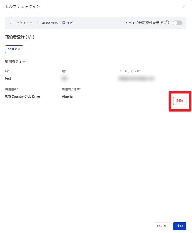 商家可在PMS系统内删除客人提交的表单,删除后需要客人重新提交表单